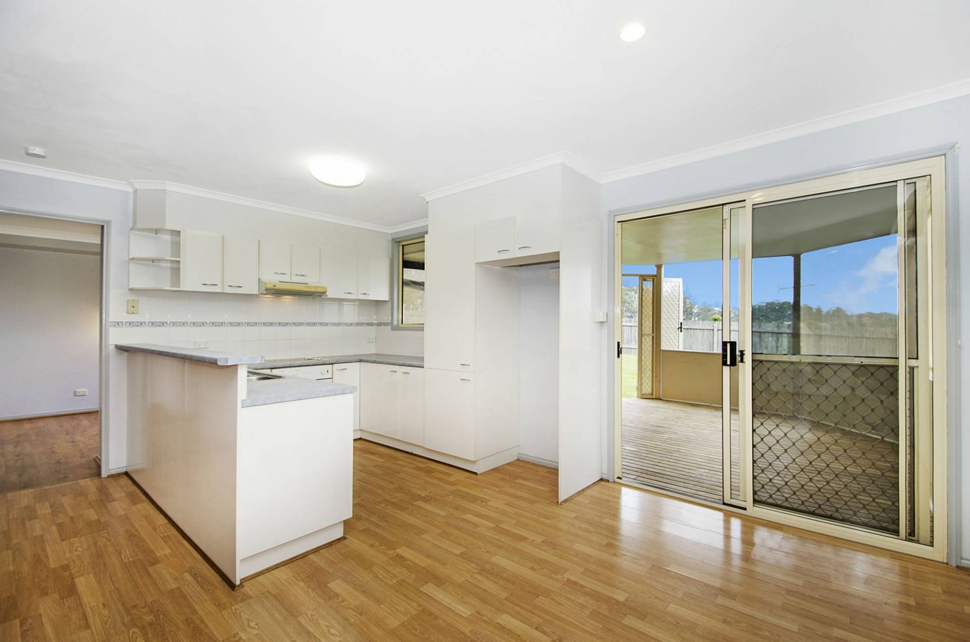 It offers a spacious air conditioned open plan living, kitchen and dining zone which connects through sliding doors to the enclosed rear deck area.