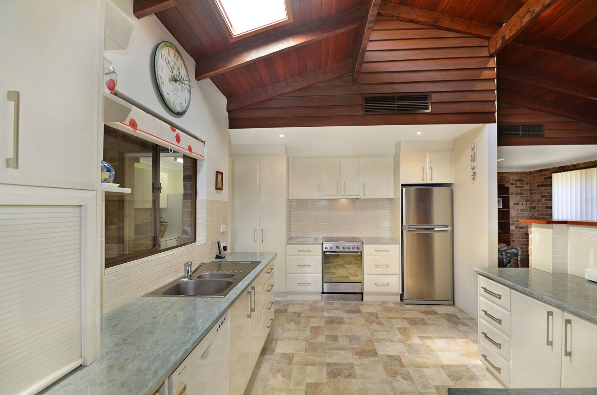 Featuring a spacious living, dining and kitchen zone with vaulted mahogany ceilings and multiple skylights, there is a sense of space and comfort as you enter the home. The ultra-large kitchen offers quality appliances and two-pac cabinetry providing a focal point for the living zone.