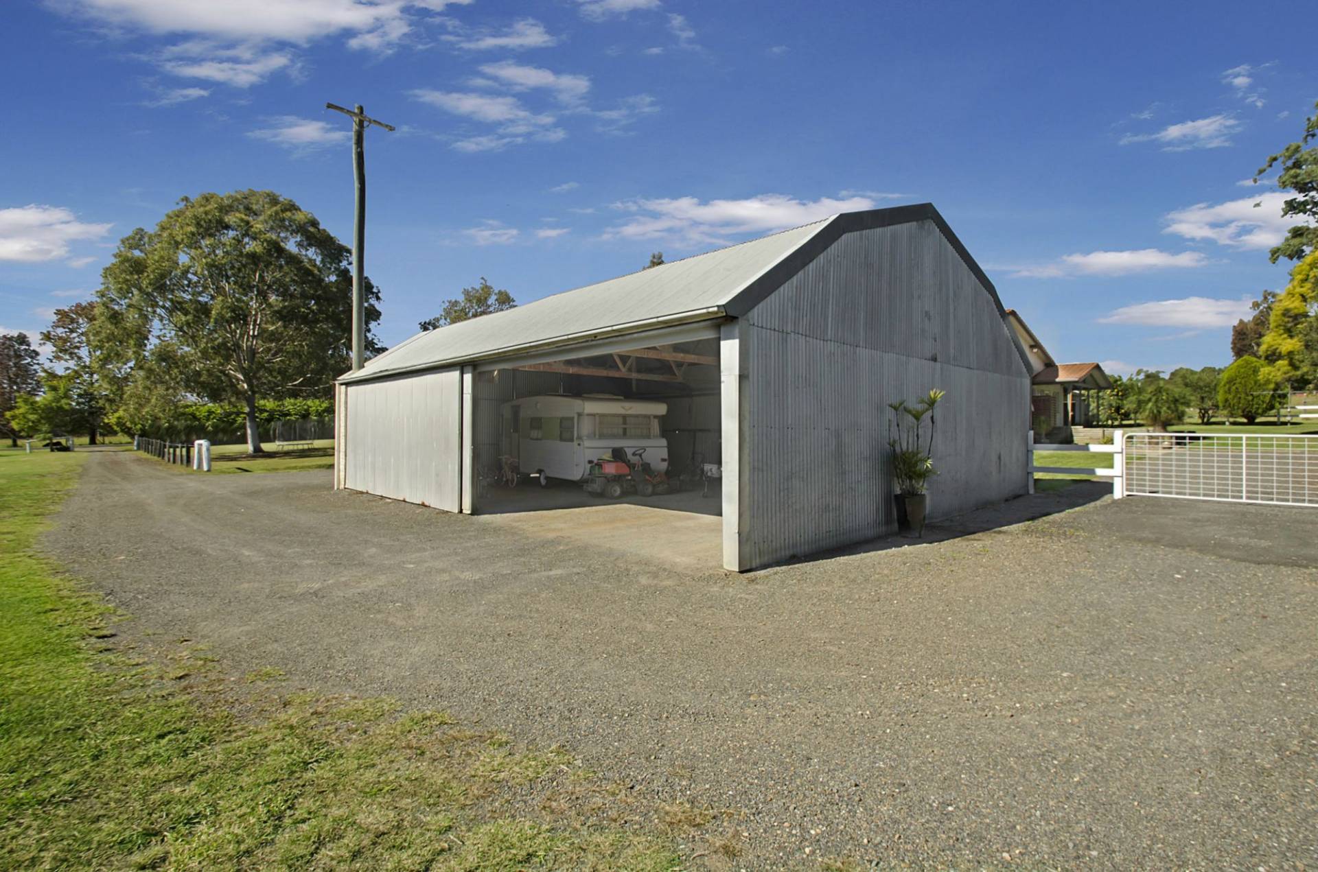 Perfectly set up for horses, the property has a five stable complex with tack room, quality fencing and a substantial 16m x 10m shed for a boat, motorhome, horse float and other equipment.