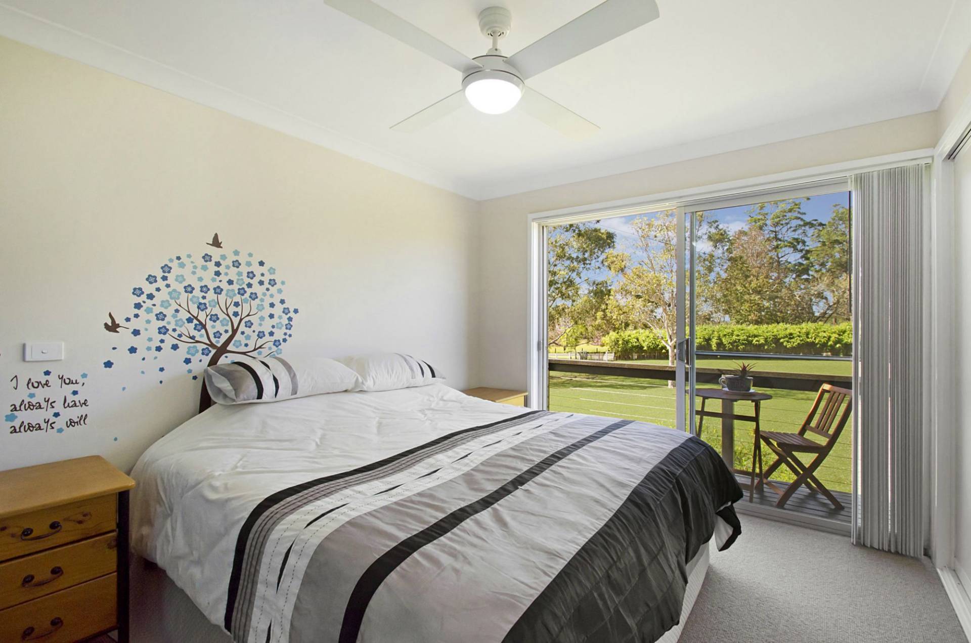 All five bedrooms have built-in wardrobes and ceiling fans with the master bedroom also benefiting from a juliet-style balcony. The spacious bathroom has a large built-in bath and separate shower with a second toilet located downstairs.