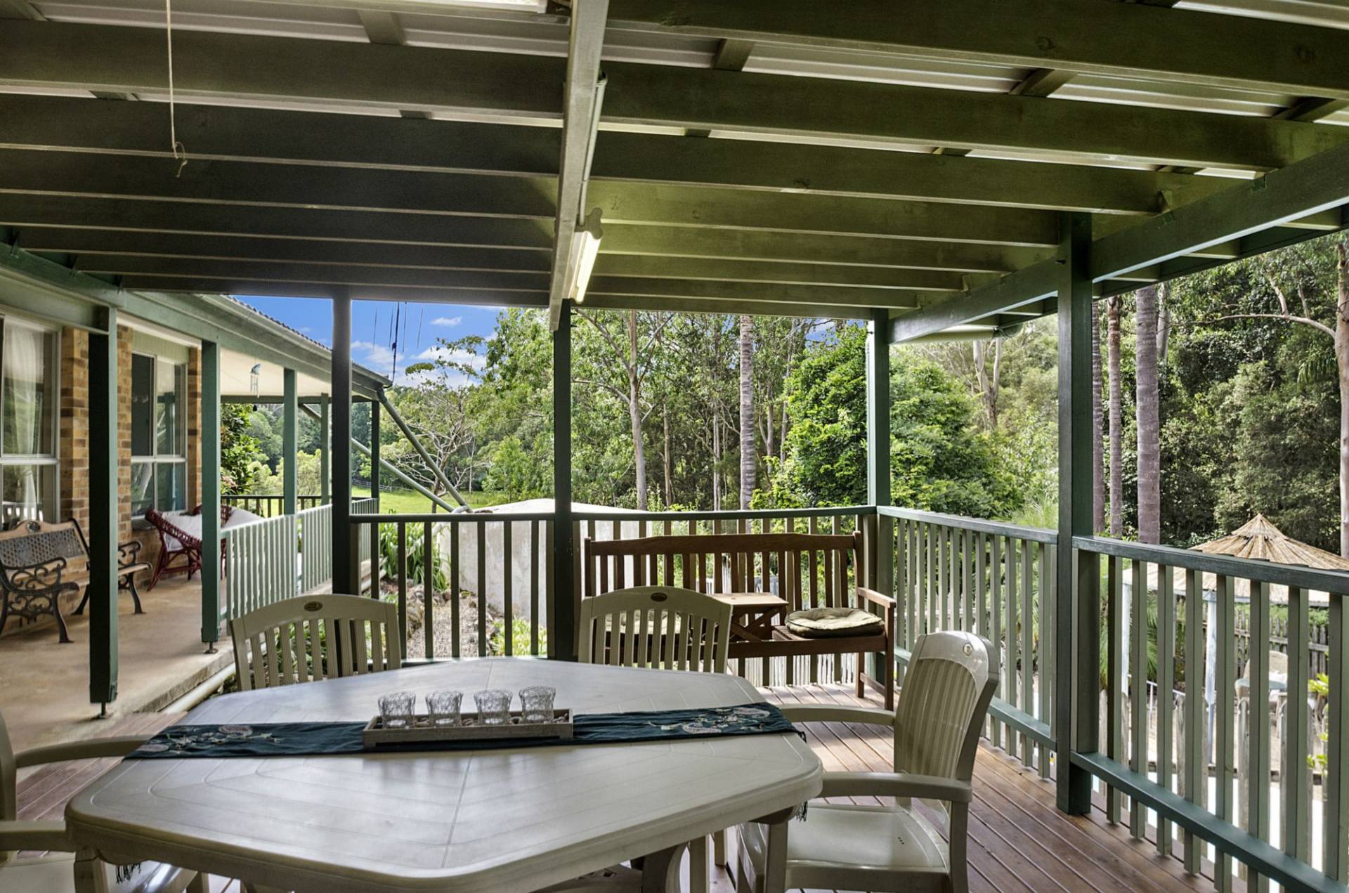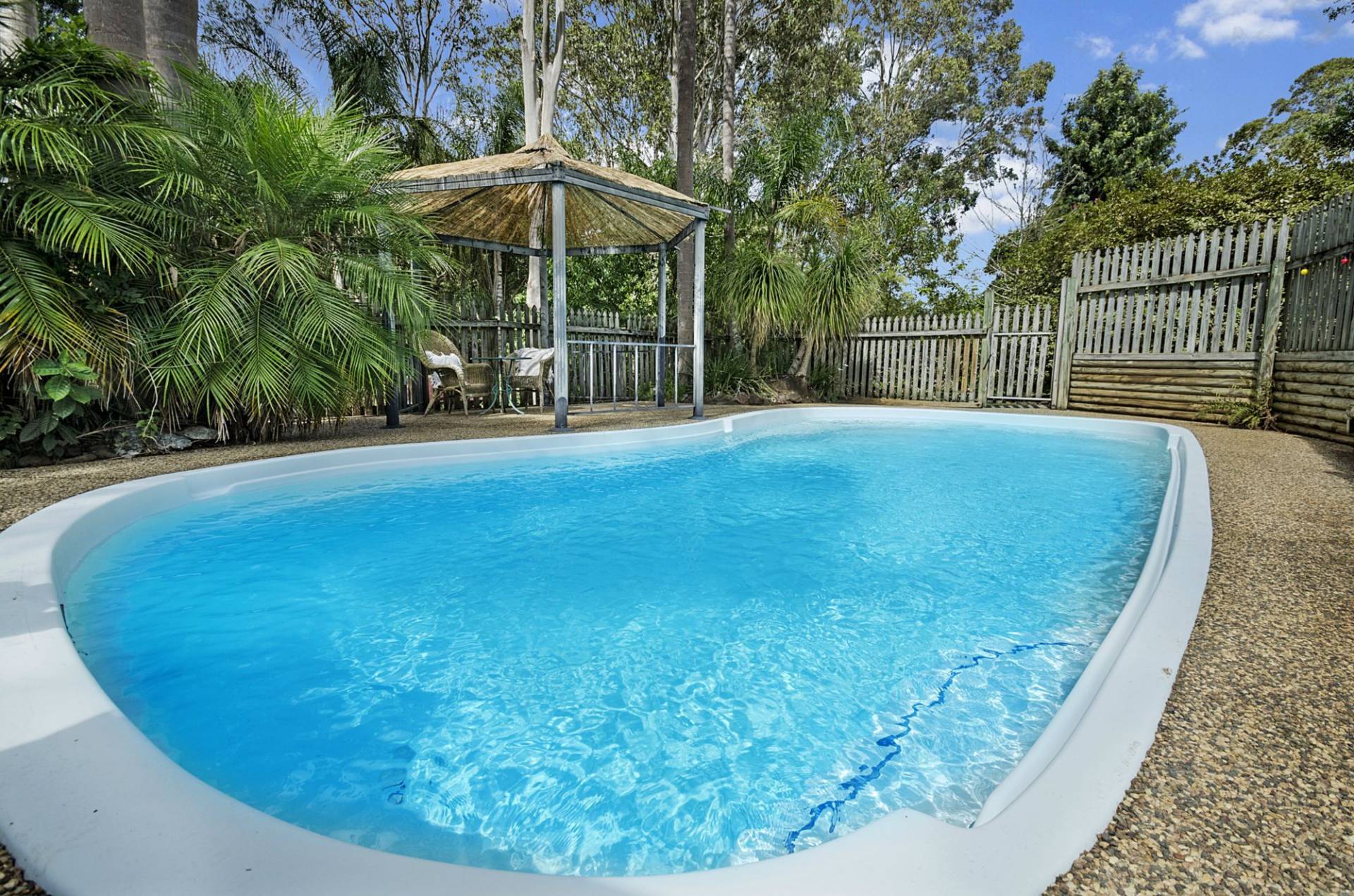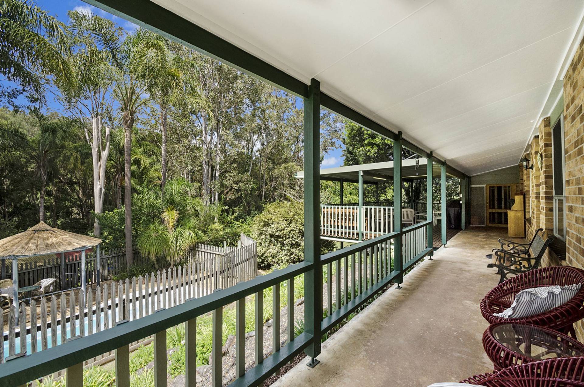The rear verandah and covered outside entertaining area looks out over the swimming pool and gazebo that benefits from a lovely bush backdrop.