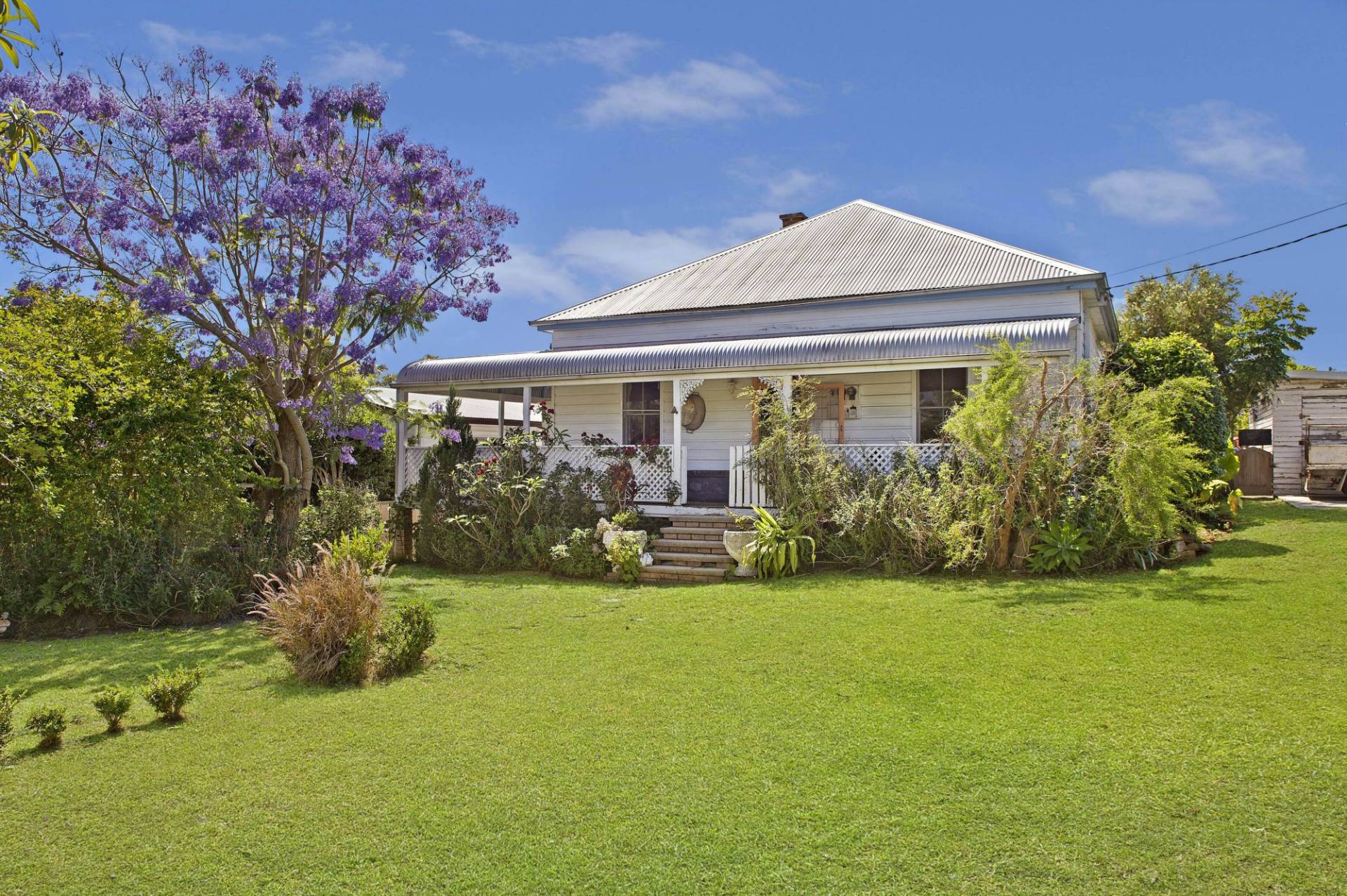 The symmetrical front of the home features a bullnose verandah that also runs along part of one side.
