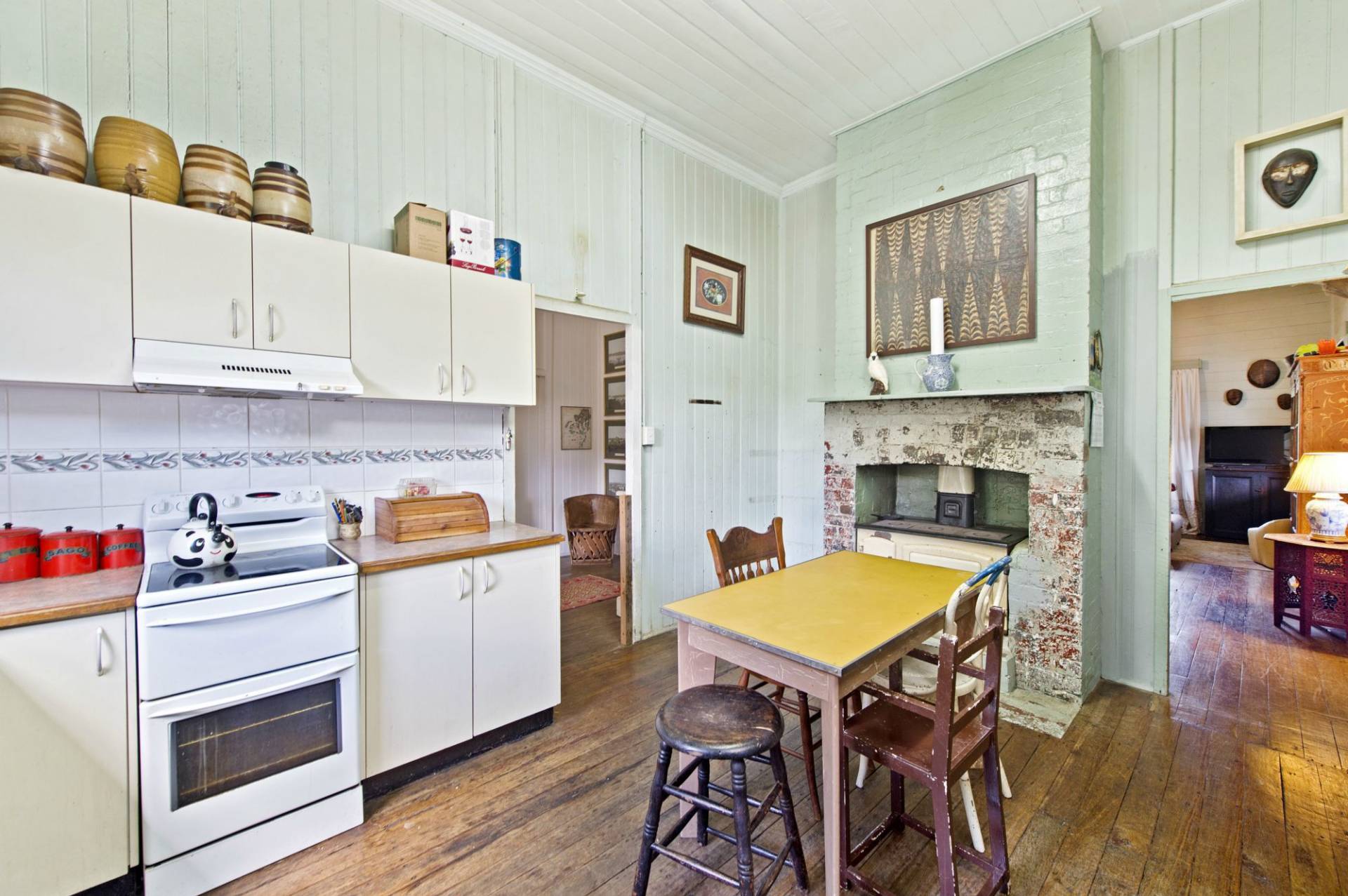 The good-sized lounge room connects through to the kitchen dining that features the original brick hearth. There are lovely gardens to the front and rear and a single garage.