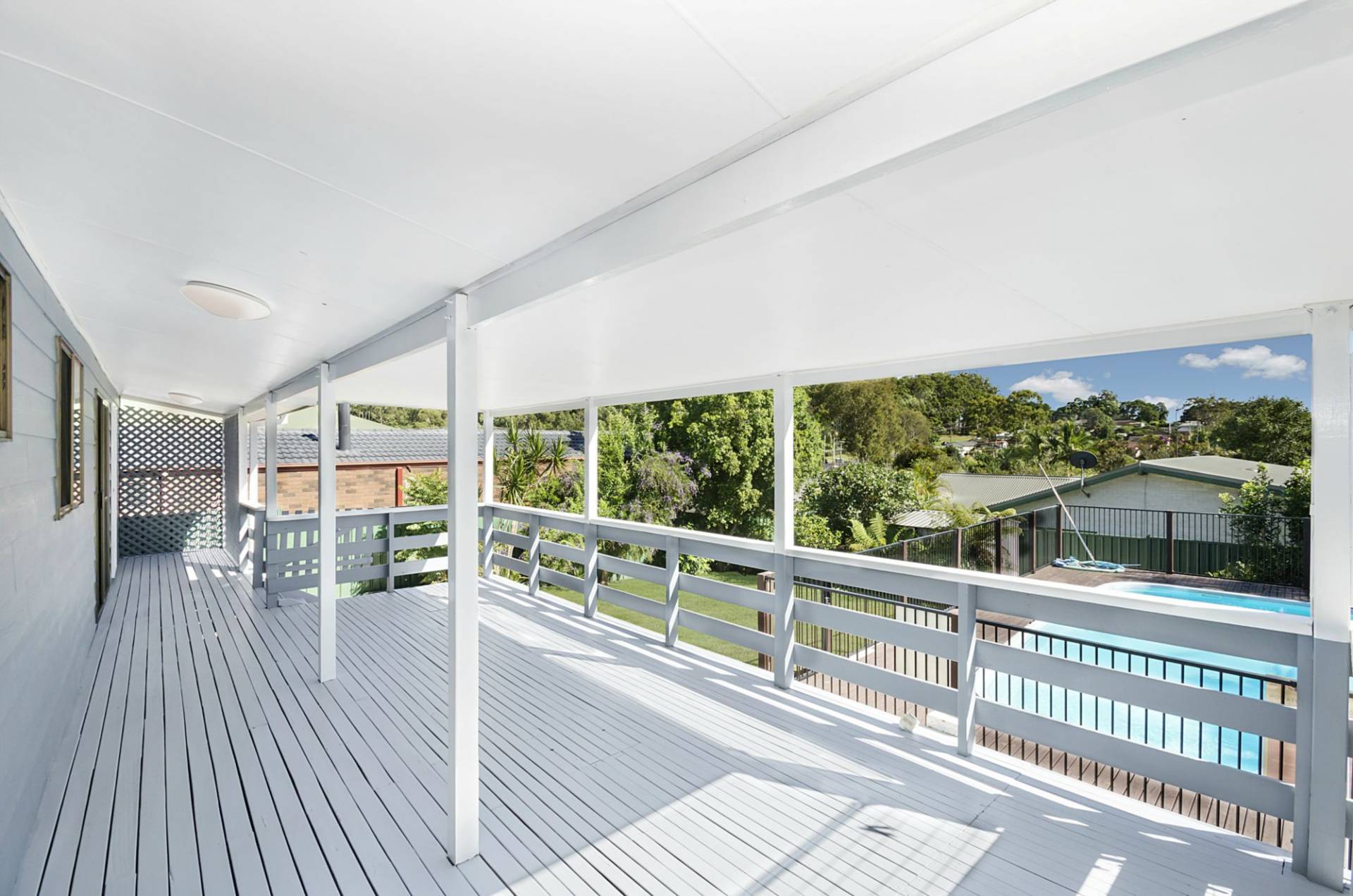 Recently benefiting from being re-painted inside and out, the home enjoys full length rear verandah and undercover dining area overlooking the lovely rear garden with sparkling pool surrounded by timber decking.