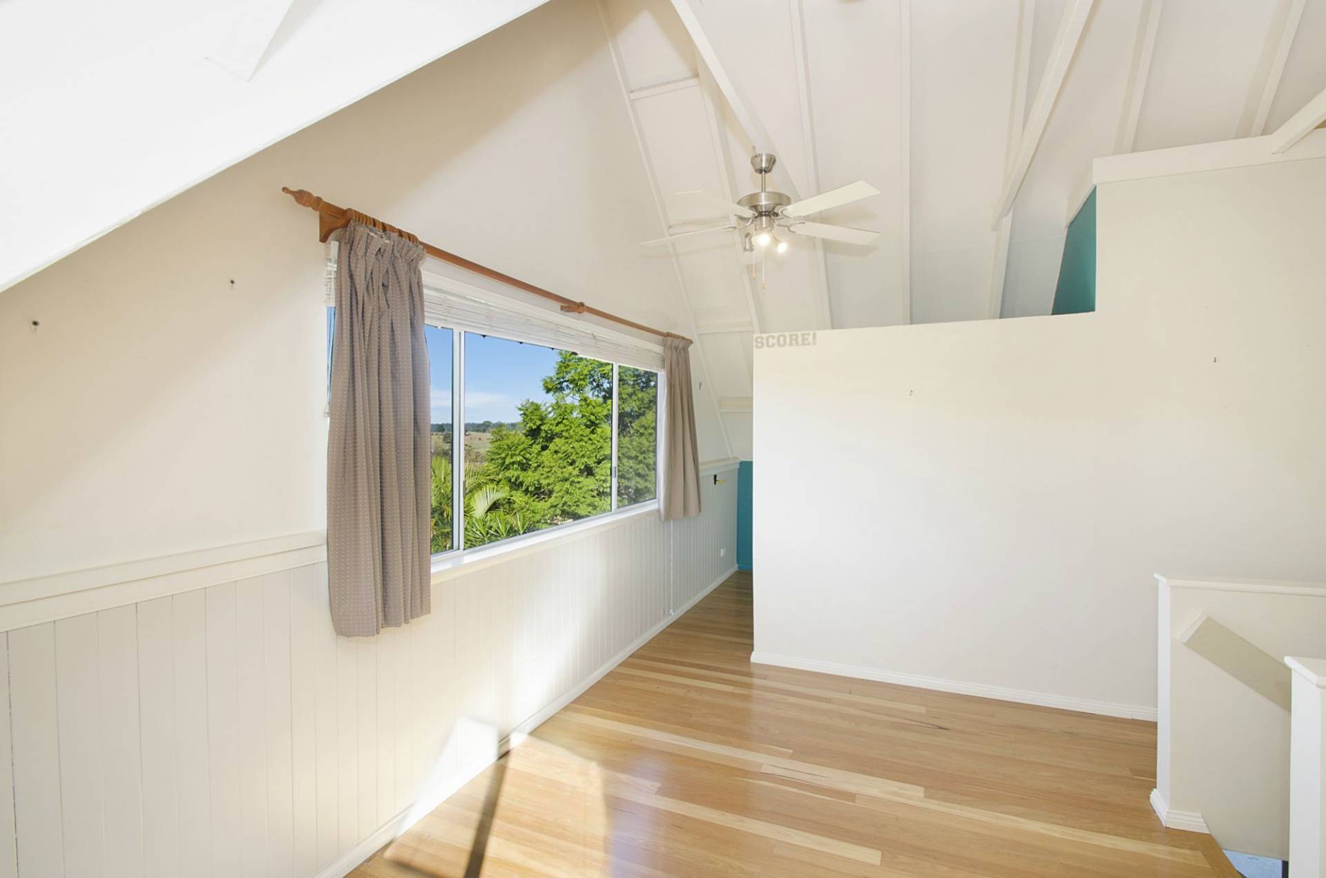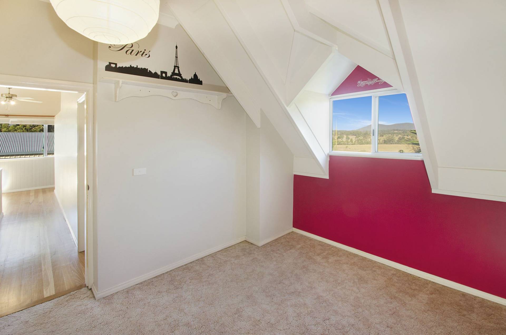 Upstairs there are three bedrooms, a study nook and large landing area. Each bedroom has dormer windows extending through the gabled roofline.