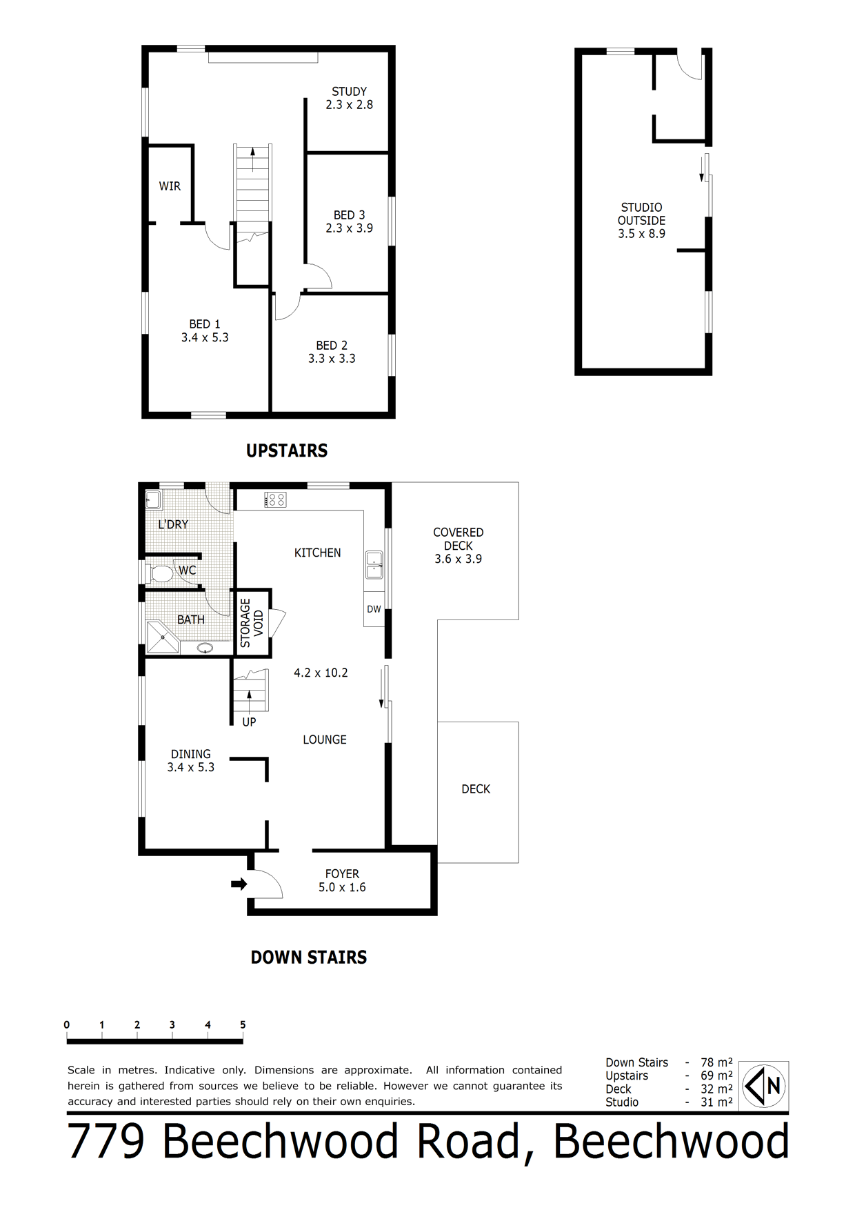 The entry to the home is through a large enclosed porch that opens to a spacious open plan living, dining and kitchen space that connects to a separate lounge area. Two sets of sliding doors access the timbered deck and covered outside entertaining area. The main bathroom and laundry are also on the ground level with access to outside.