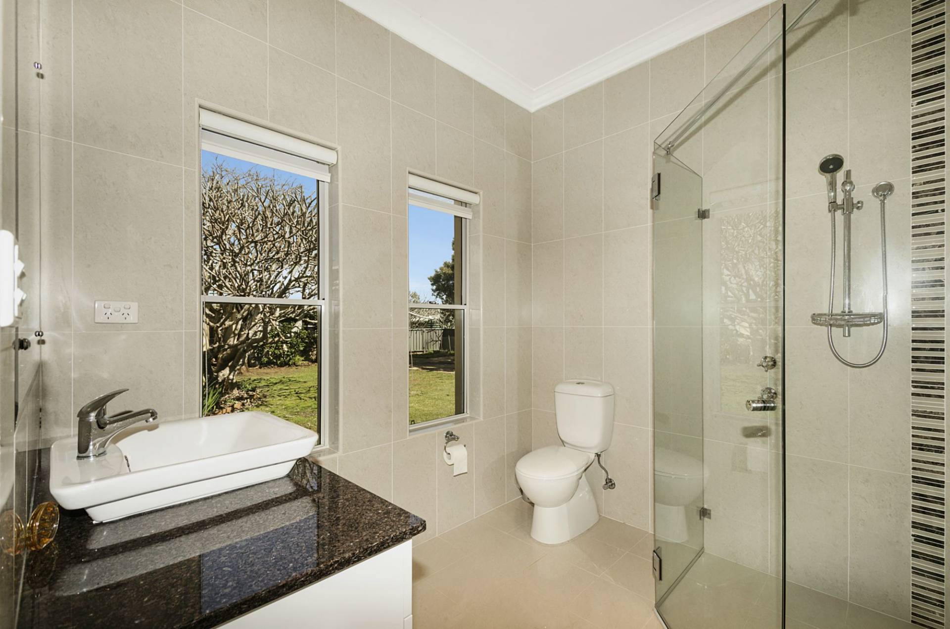 A large tiled entrance leads to a substantial lounge area that connects to the main living, dining and kitchen zone that connects to the outside entertaining area via sliding doors. Granite benchtops, double oven and an island bench comprise the delightful kitchen that connects to a combined butlers pantry/laundry.