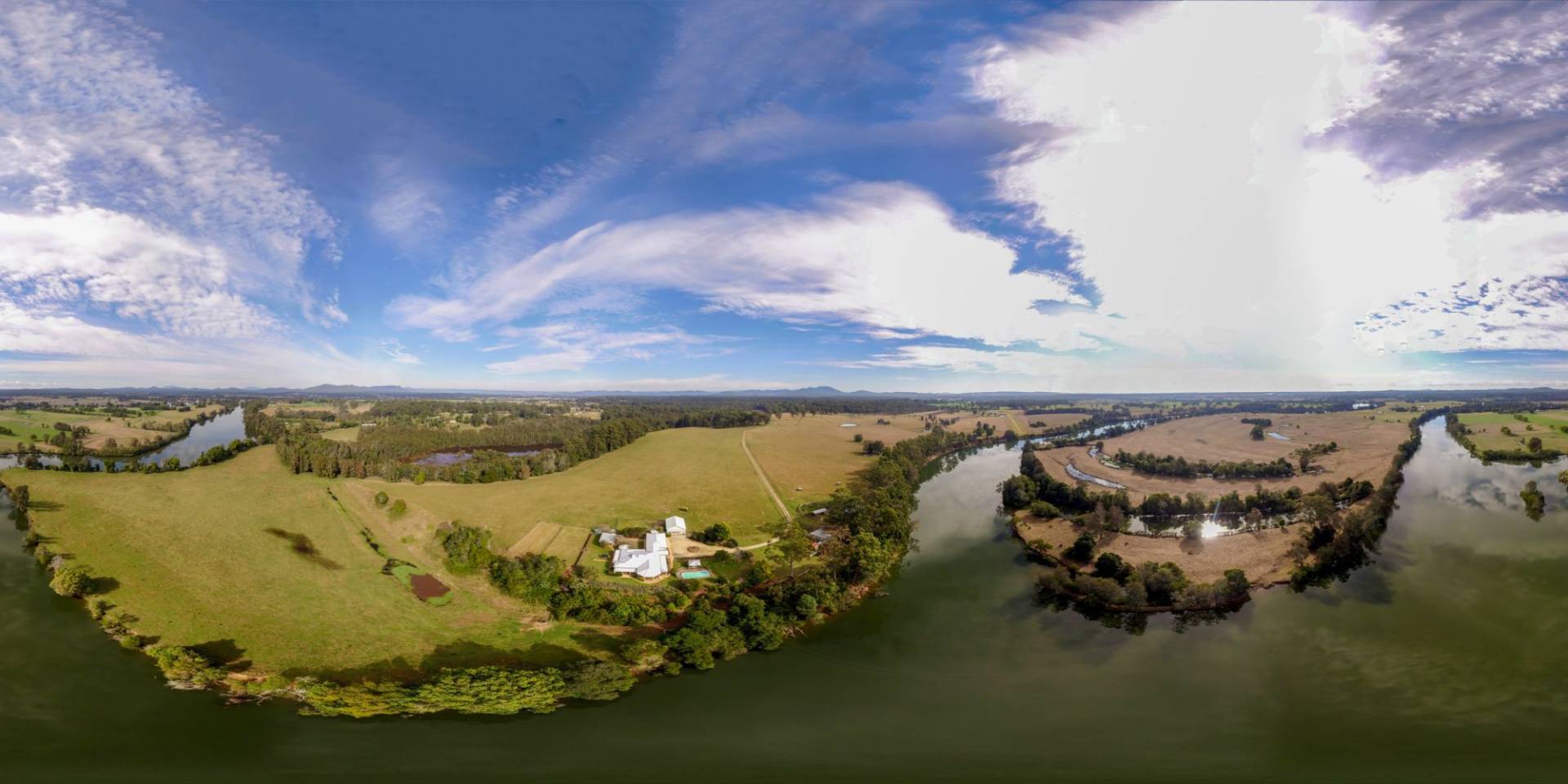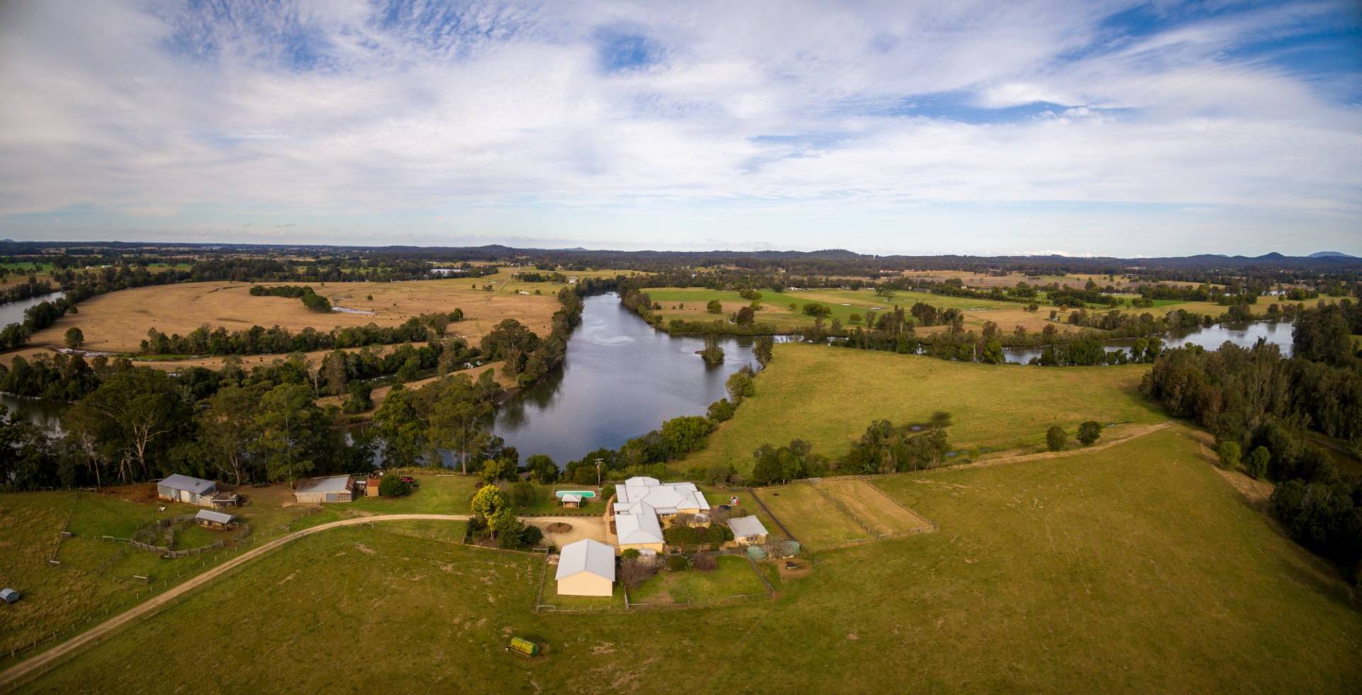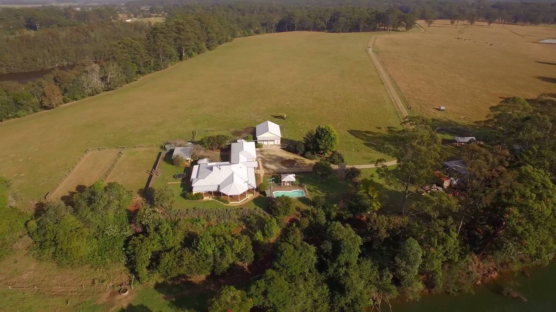 The expansive five bedroom home is revealed via a 1.5km driveway that meanders through the entire property from the front gate to the riverfront.