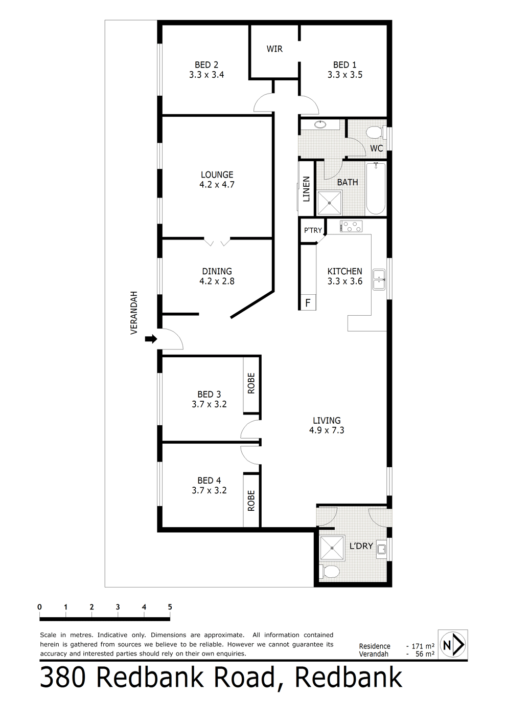 The main bathroom is at one end of the home and has a separate toilet, bath and shower while the second bathroom and laundry is at the other end of the home and has a shower and second toilet.