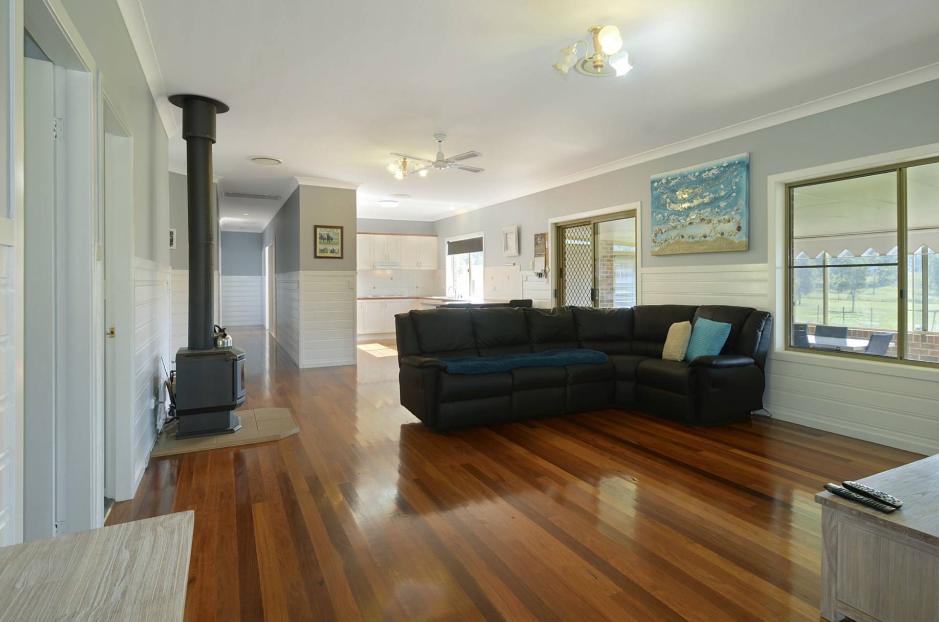 The expansive open plan country style kitchen and living zone connects to an enclosed 5m x 13m Queensland room that overlooks the barbecue area and across the property.