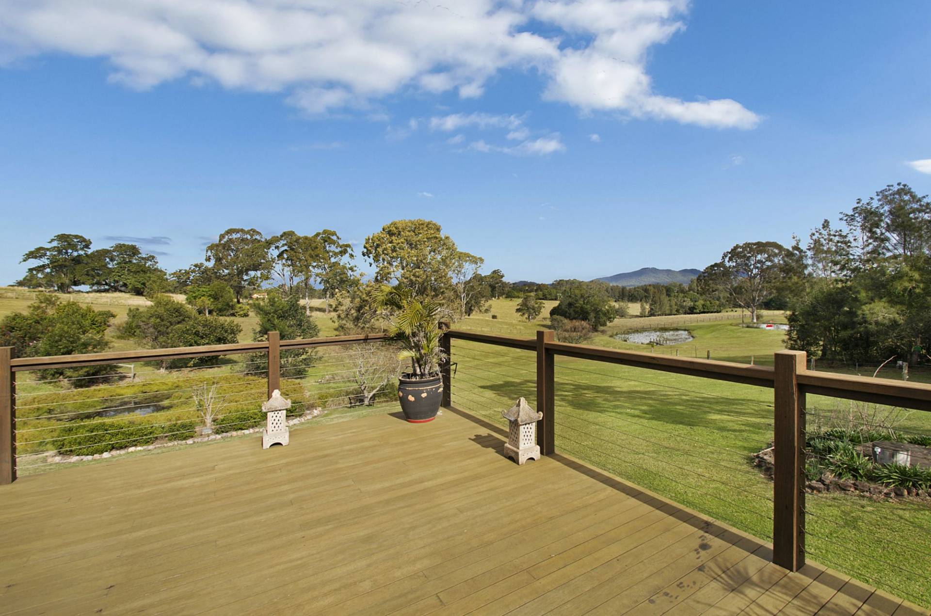 The north-facing home is set back from the road and offers wonderful country views toward the Bago range from the main living, dining and kitchen zone that connects to the substantial rear entertaining deck.