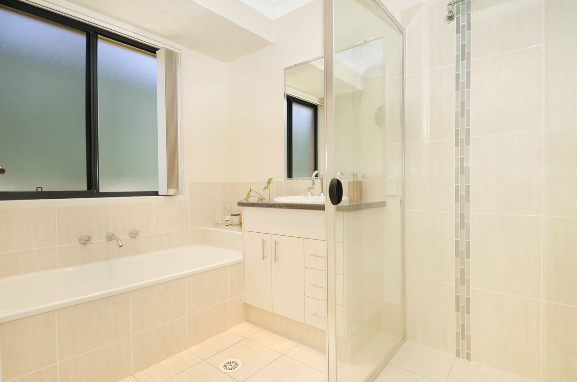 The master bedroom benefits from a walk-in wardrobe and ensuite while the other two bedrooms with built-in wardrobes are serviced by the main bathroom with separate shower and bath.
