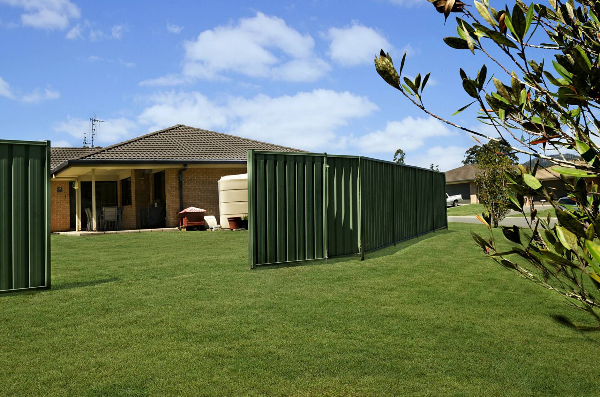 A set of double gates allow easy access to the rear with plenty of room for a shed for a caravan/motorhome.