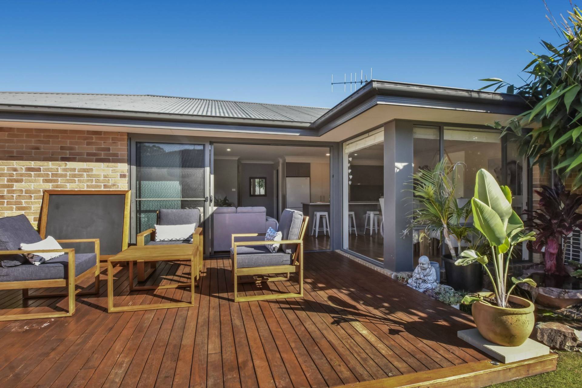 The hub of the home is a sleek and light-filled living, dining and kitchen zone that flows seamlessly via stacking sliding doors onto a timber deck, perfect for indoor/outdoor living. A separate and spacious formal lounge at the front of the home provides an additional living zone.