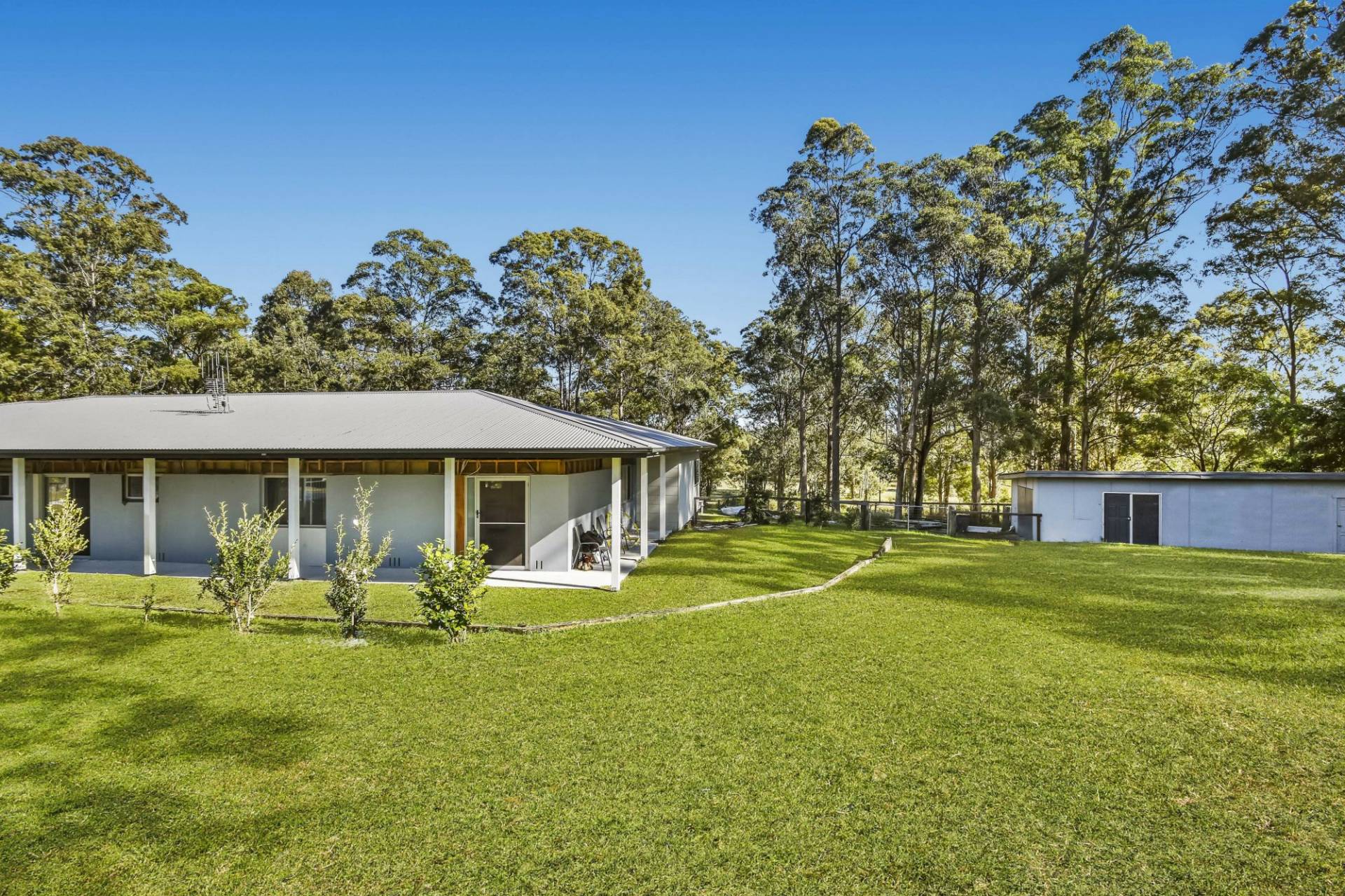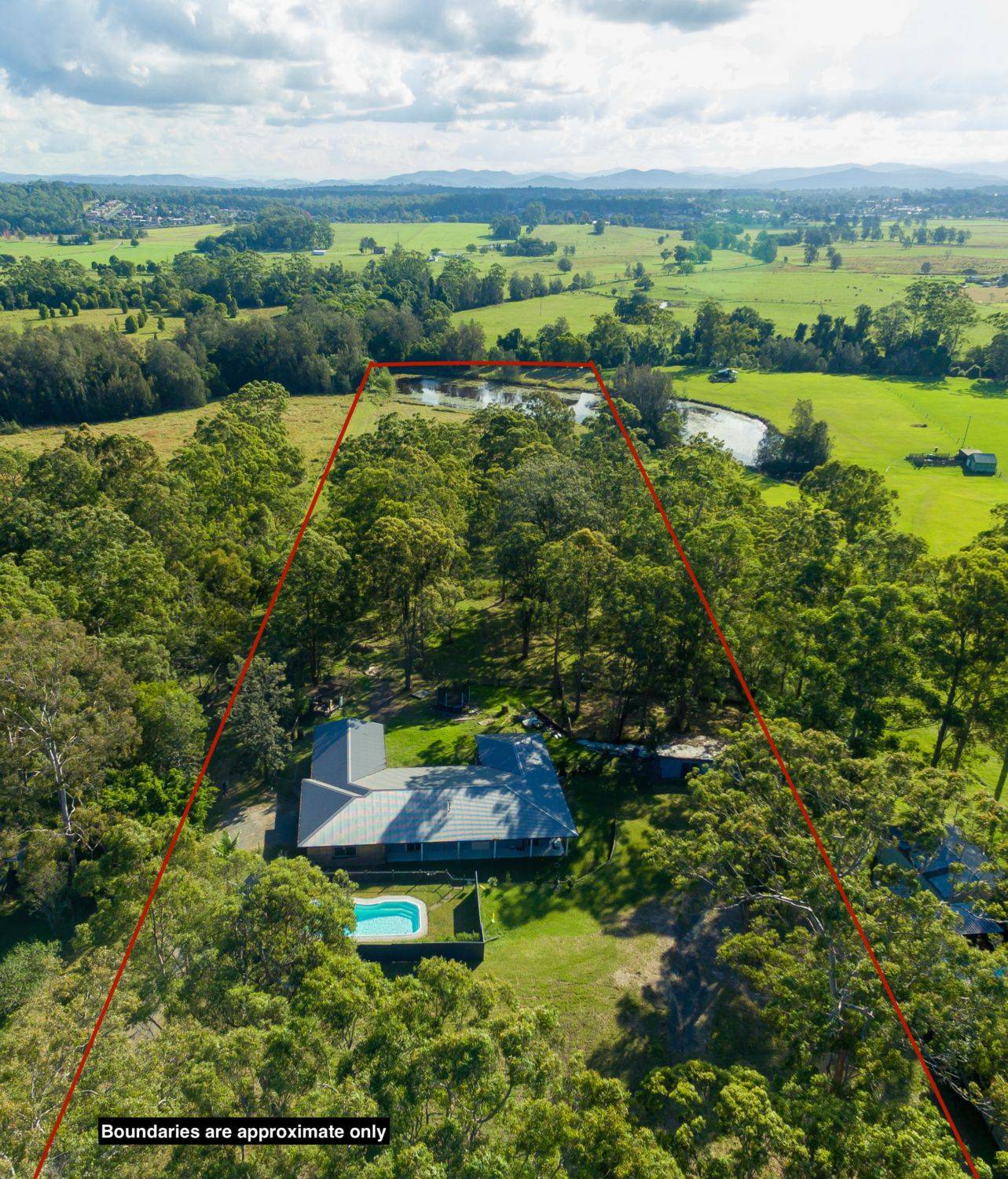 Set well back from the road and enjoying a private, elevated outlook over the acreage is the three bedroom home with self-contained fourth bedroom/studio and inground swimming pool.