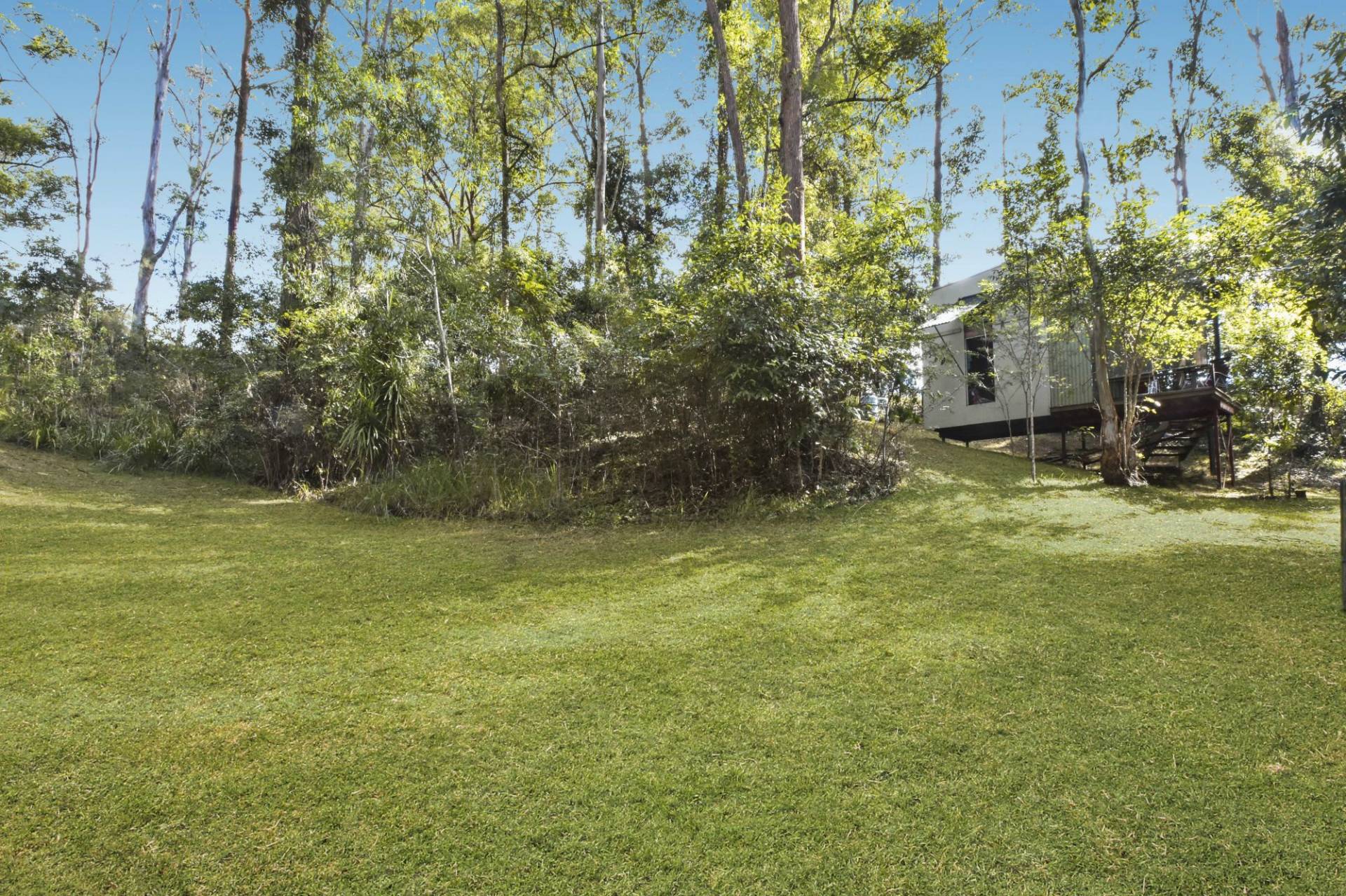 The property slopes from front to rear with a couple of cleared areas with the balance being bush and trees.