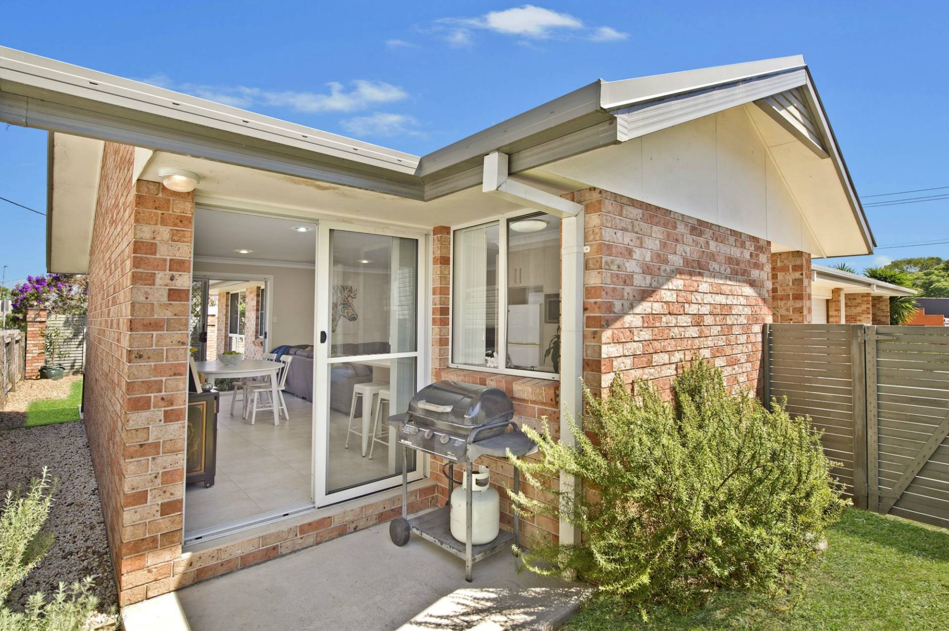 The light and bright tiled living/dining zone flows through sliding doors to two connecting private courtyards at the front and the rear, perfect for a morning coffee or evening barbecue.