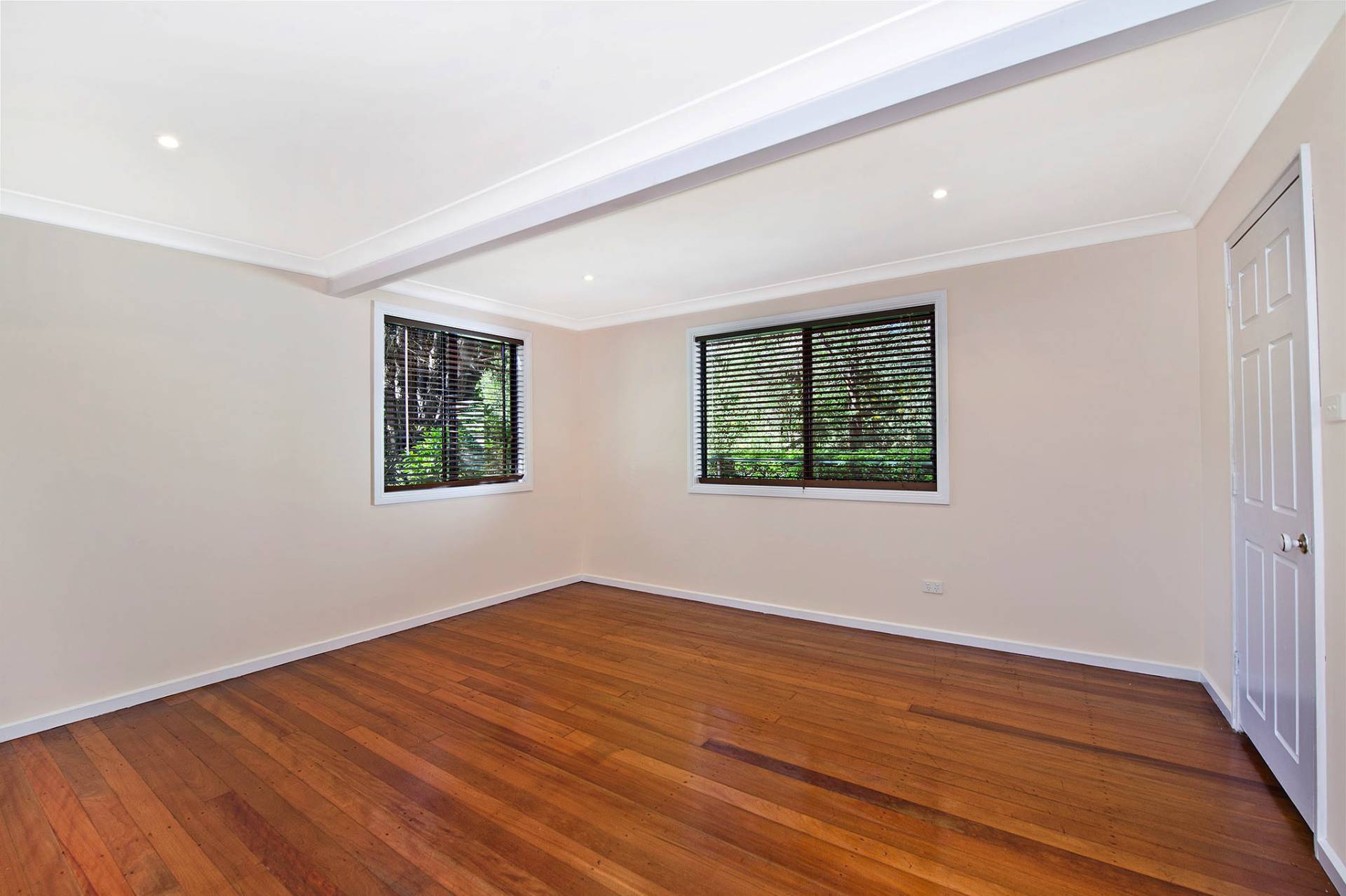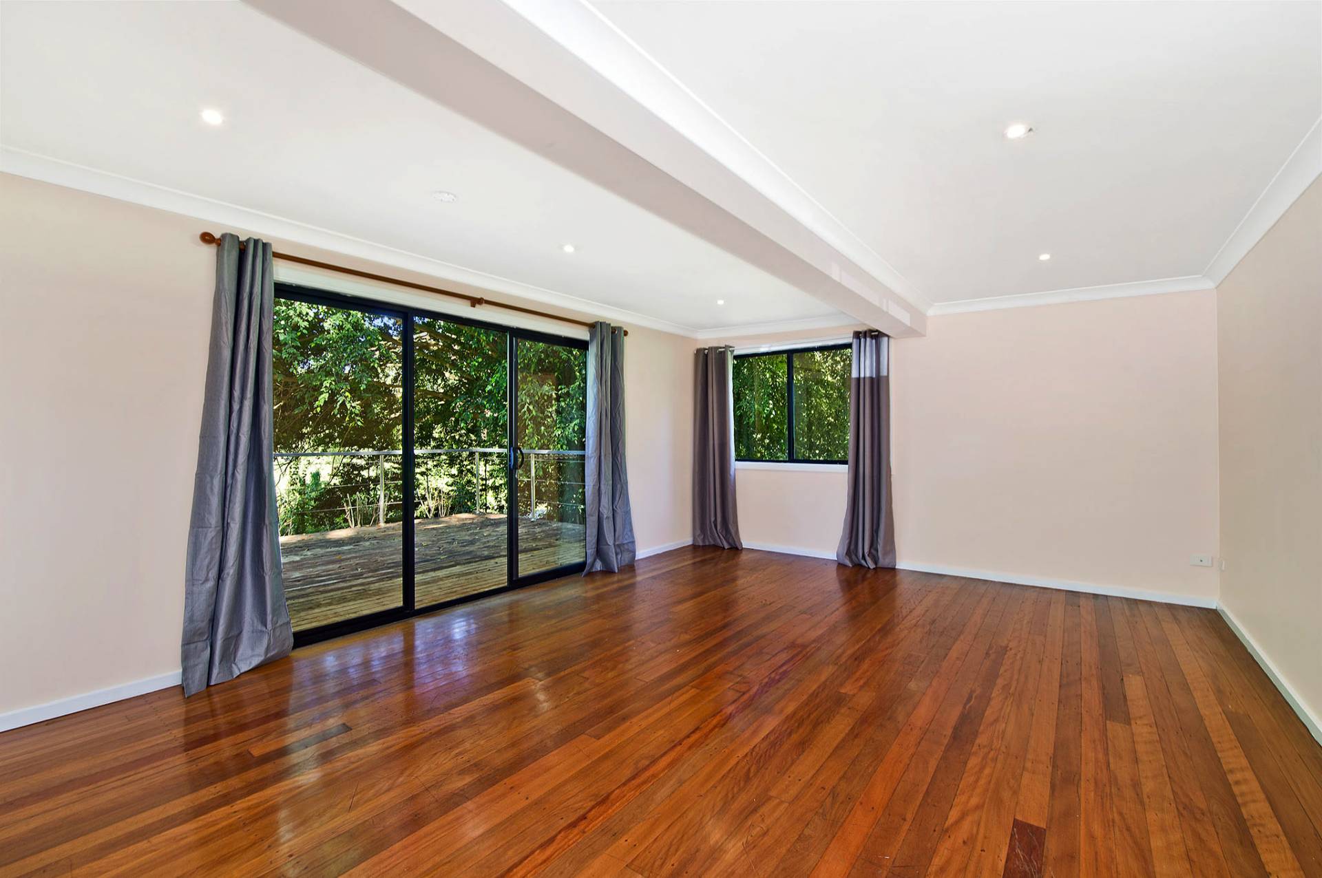 There is a large open plan dining, kitchen and living zone that connects through a sliding door to a timbered deck and a very spacious  bedroom.