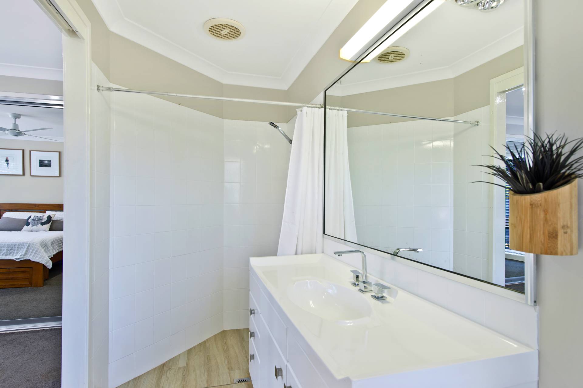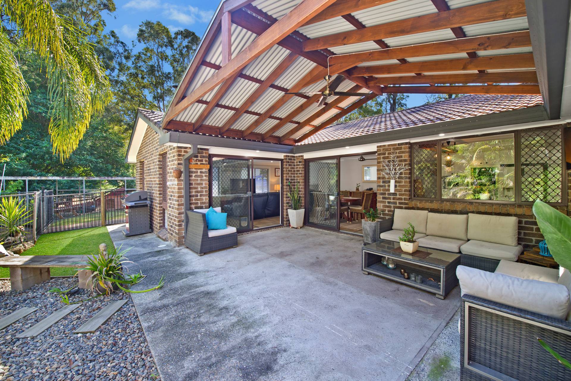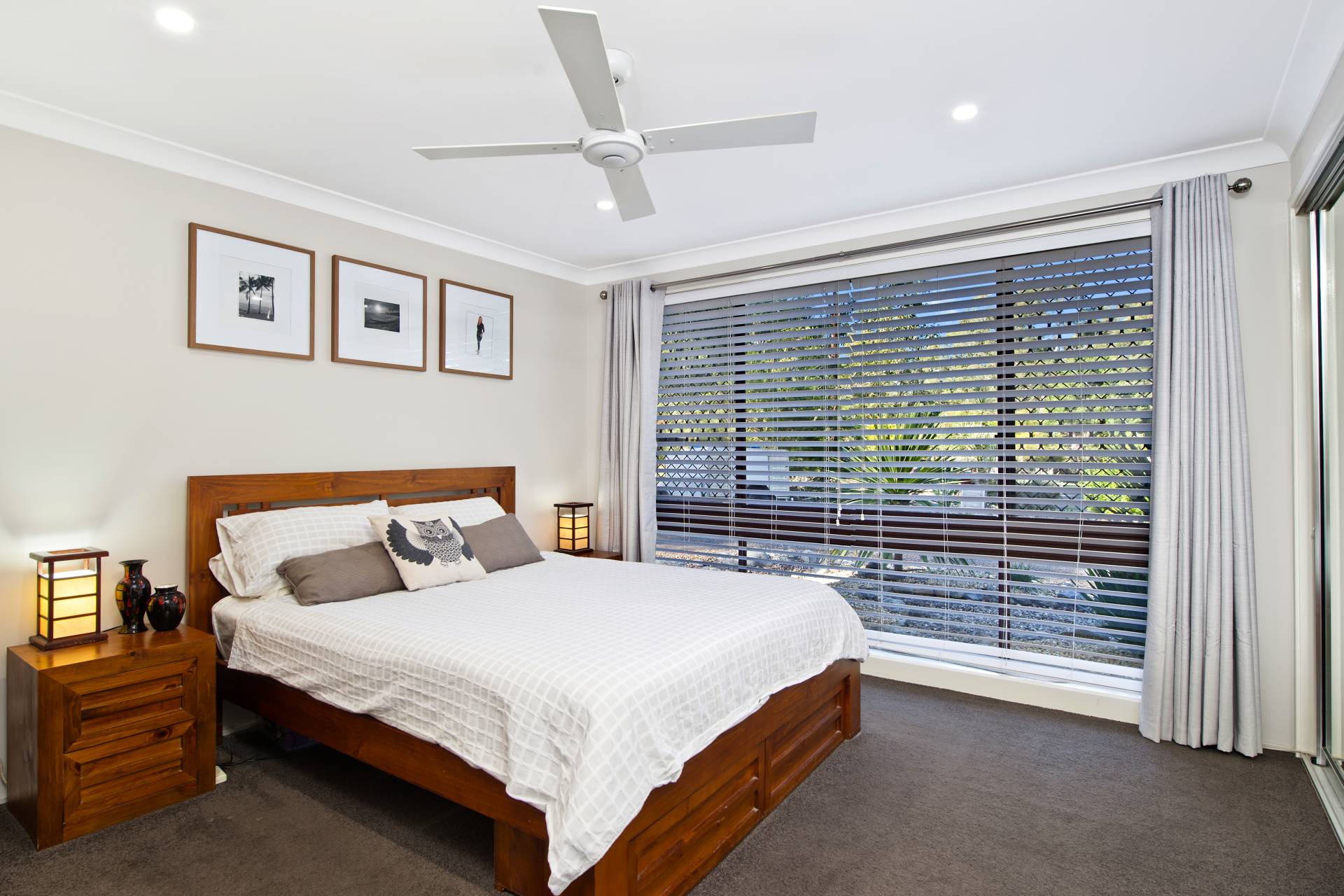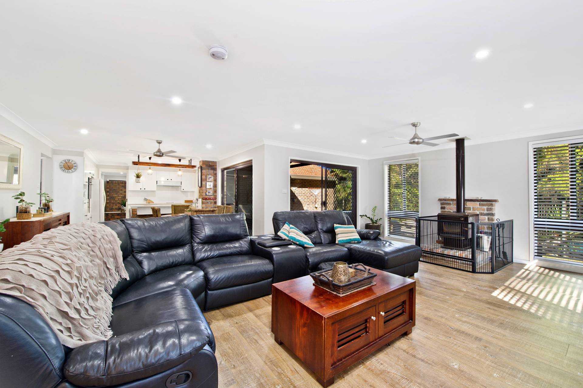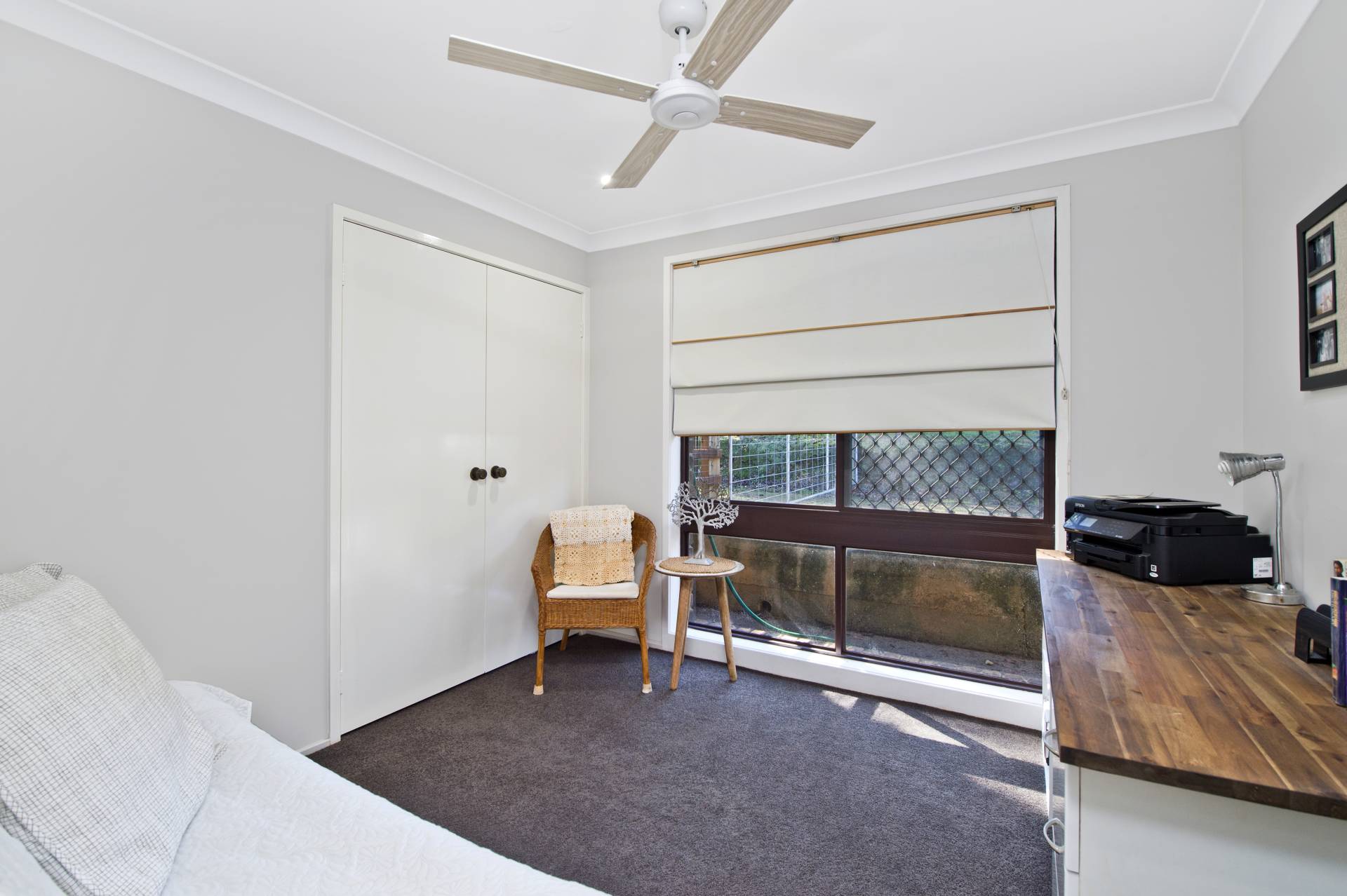 The main bedroom enjoys wall-to-wall built-in wardrobes and a spacious ensuite with walk-in shower. The second bedroom is very spacious with an integrated study and plenty of room for a couch, desk and has a built-in wardrobe and ceiling fan. The third bedroom is ideal for a younger member of the family or guests and has a built-in wardrobe and ceiling fan.