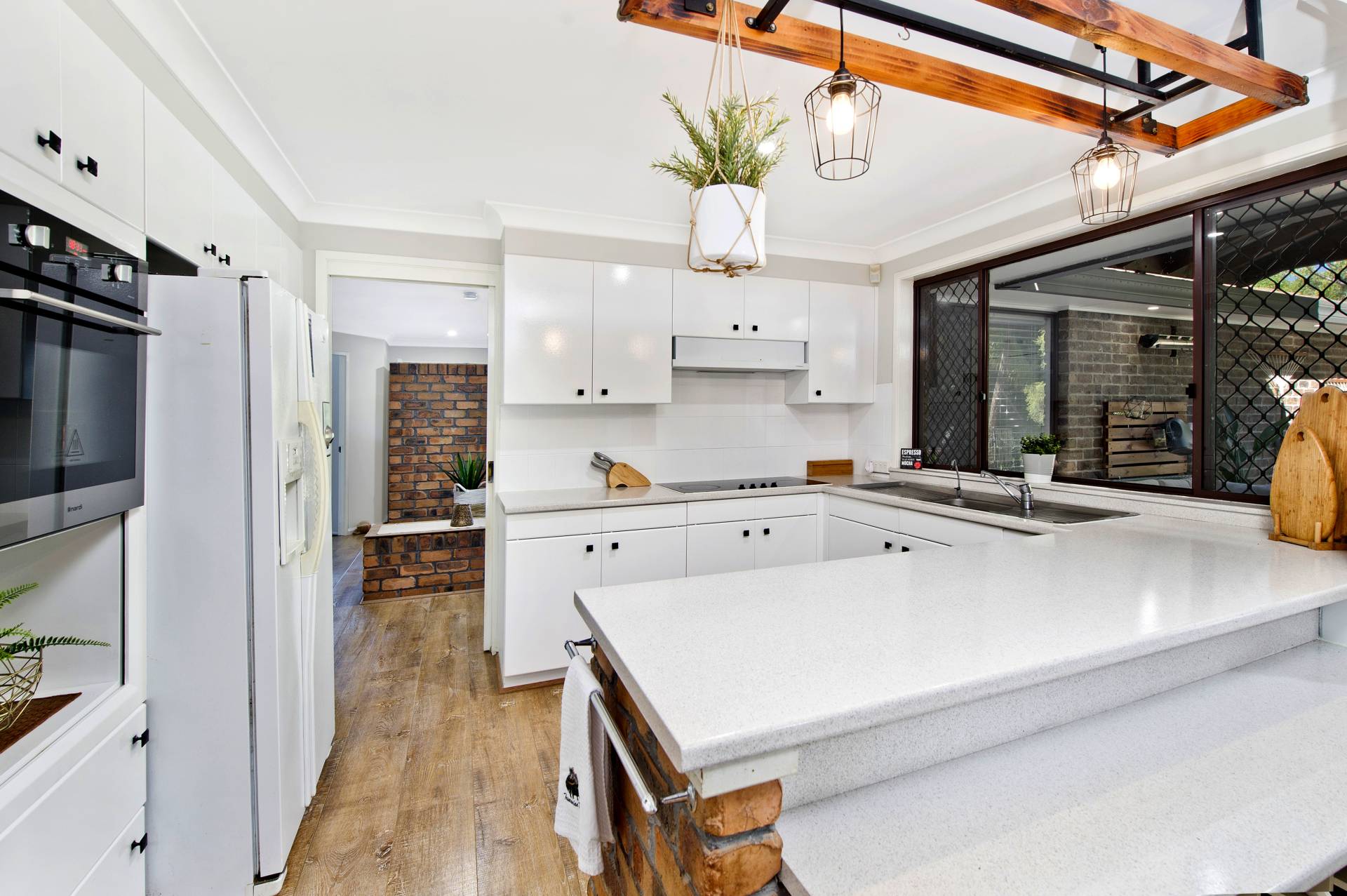 The spacious kitchen has had all the bench tops resurfaced and some new appliances and light fittings.