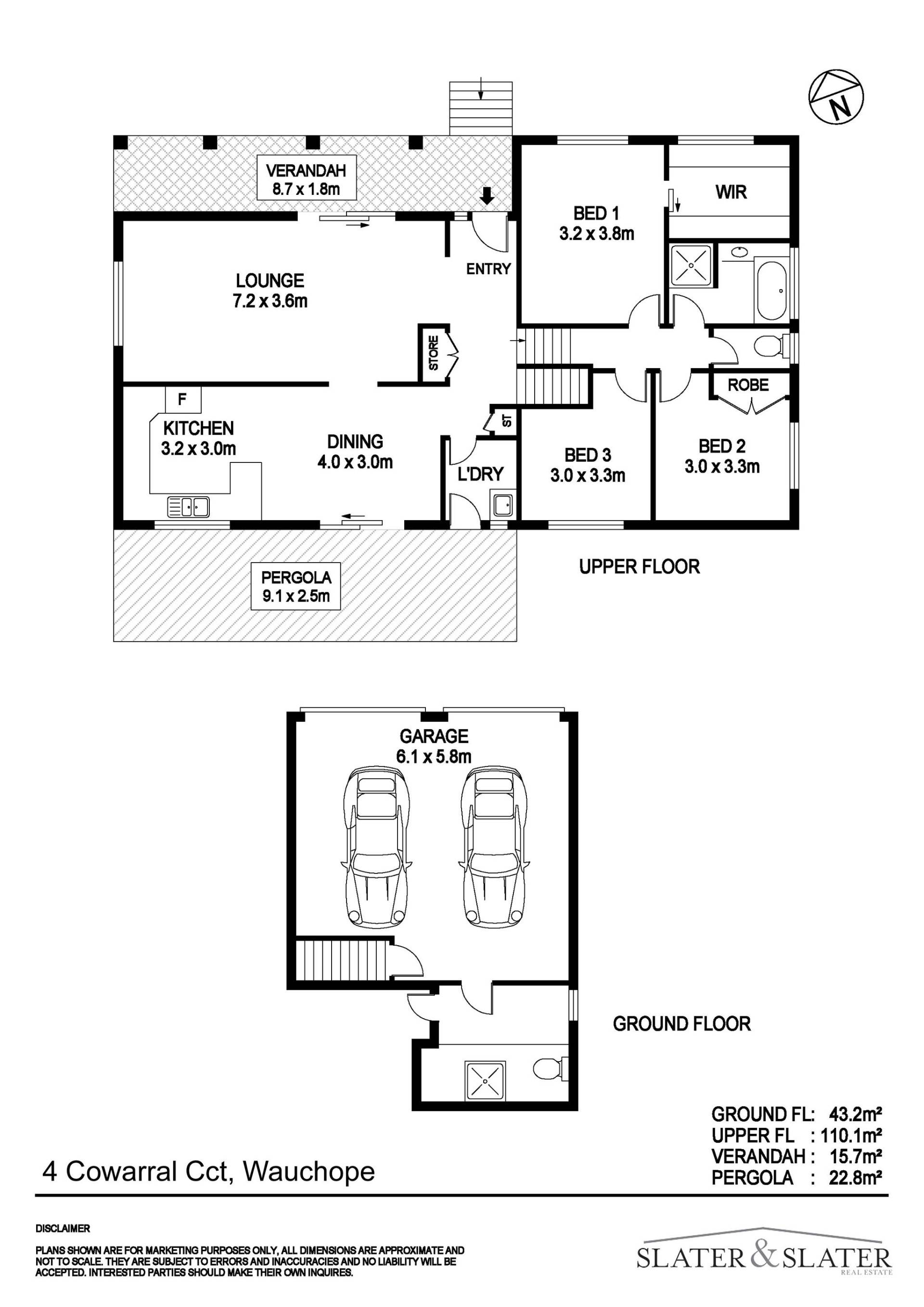 There are six stairs to the three bedrooms with the main having its own air con and large walk-in wardrobe/dressing area.