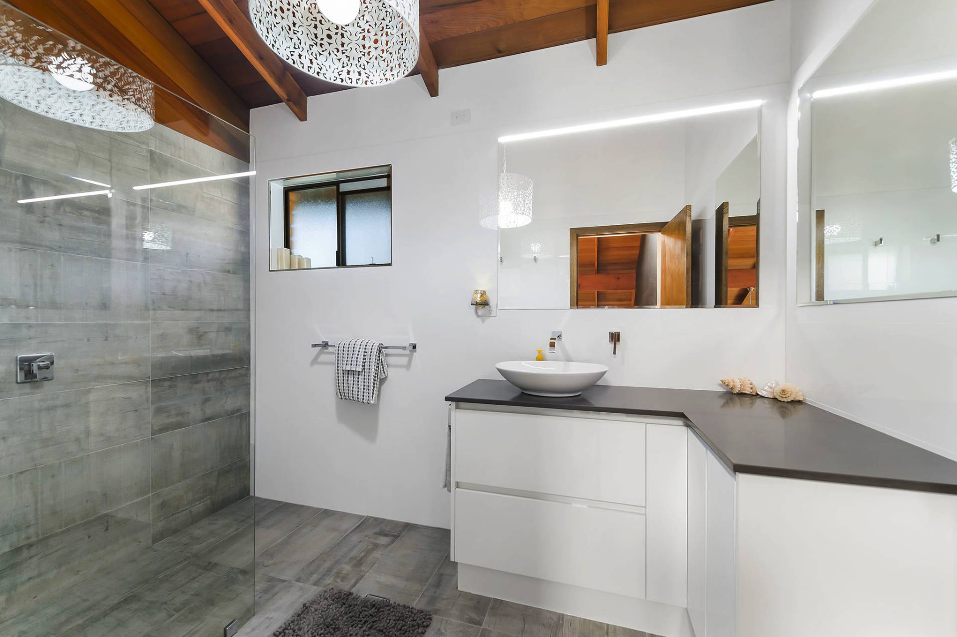 Soaring ceilings and multiple windows provide a sense of light and space throughout while offering complete privacy.