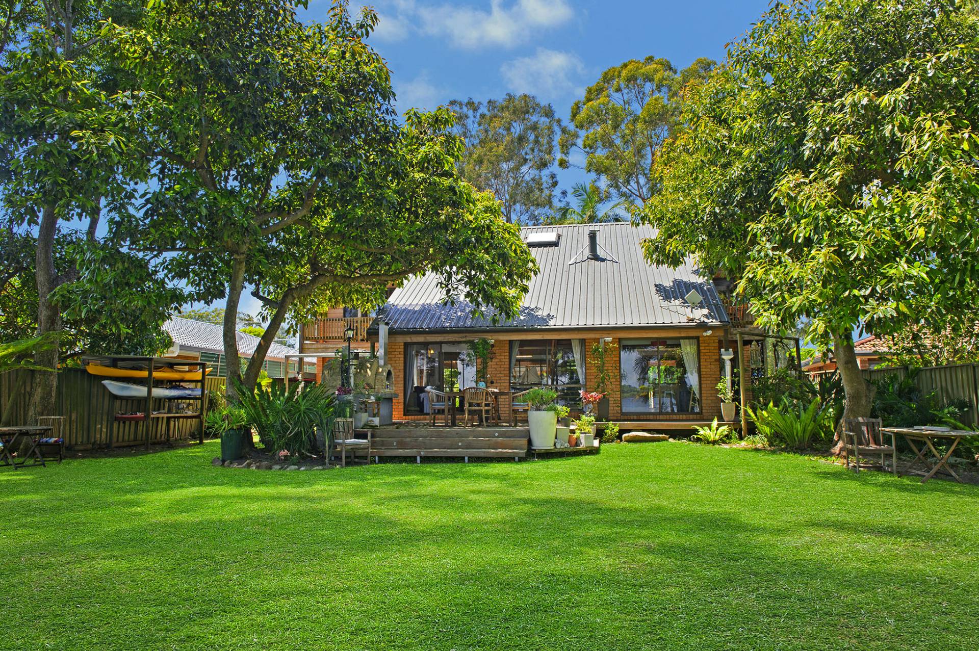 Offering seamless indoor and outdoor living there are several zones and spaces for relaxing, dining and entertaining. The large main living and dining space flows out through two sets of sliding doors onto a spacious deck with a pizza oven.
