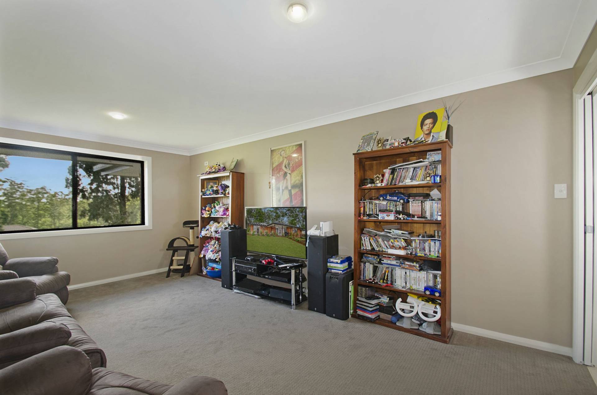 Large double sliding doors reveal a spacious open plan living, dining and kitchen area complete with wood heater and reverse cycle air con. The home also benefits from a large second lounge room/media room.
