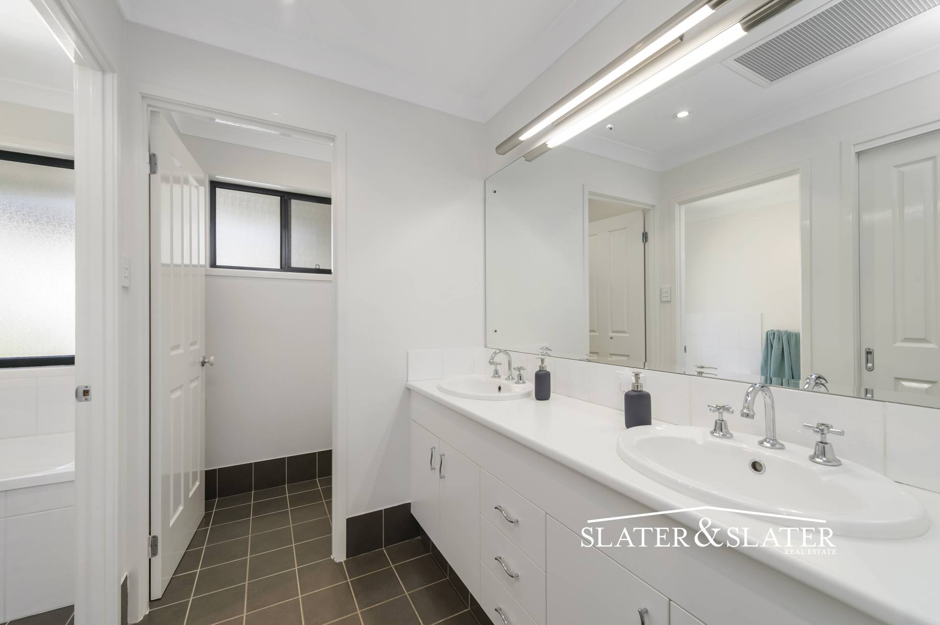 The main bedroom with ensuite and walk-in wardrobe is separate from the other three bedrooms that all benefit from built-in wardrobes. There is a large home office that could be easily configured to a fifth bedroom. The main bathroom has a bath, shower and double vanities and is adjacent to the separate laundry.