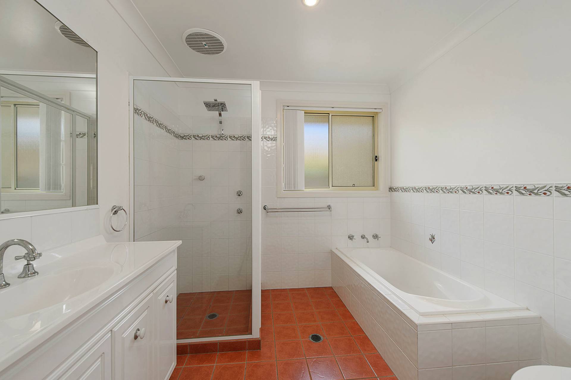 The main bedroom is separate from the others and enjoys an ensuite and walk-in wardrobe. The other three bedrooms all have built-in wardrobes and are serviced by the main bathroom that has a separate shower and bath. All the bedrooms have ceiling fans.