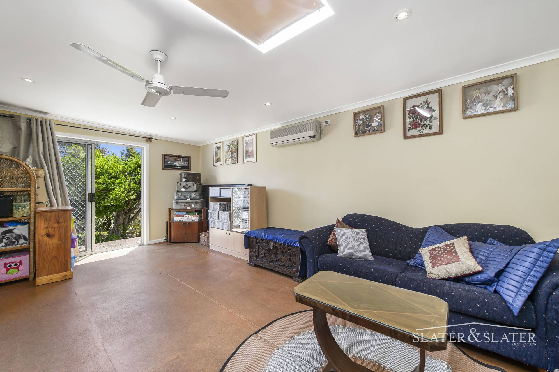 There is a large timber deck at the rear that overlooks the inground pool and gardens that feature some mature fruit trees.