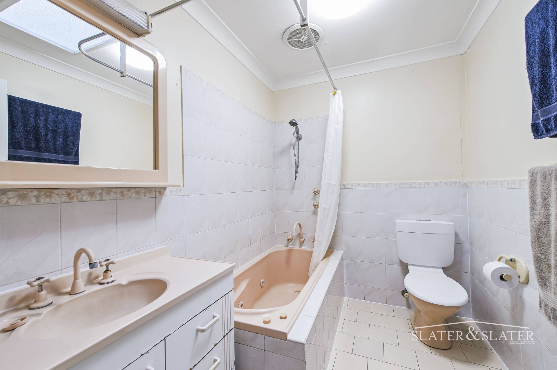 The main bathroom has a shower over bath with a second shower and toilet adjacent to the separate laundry.