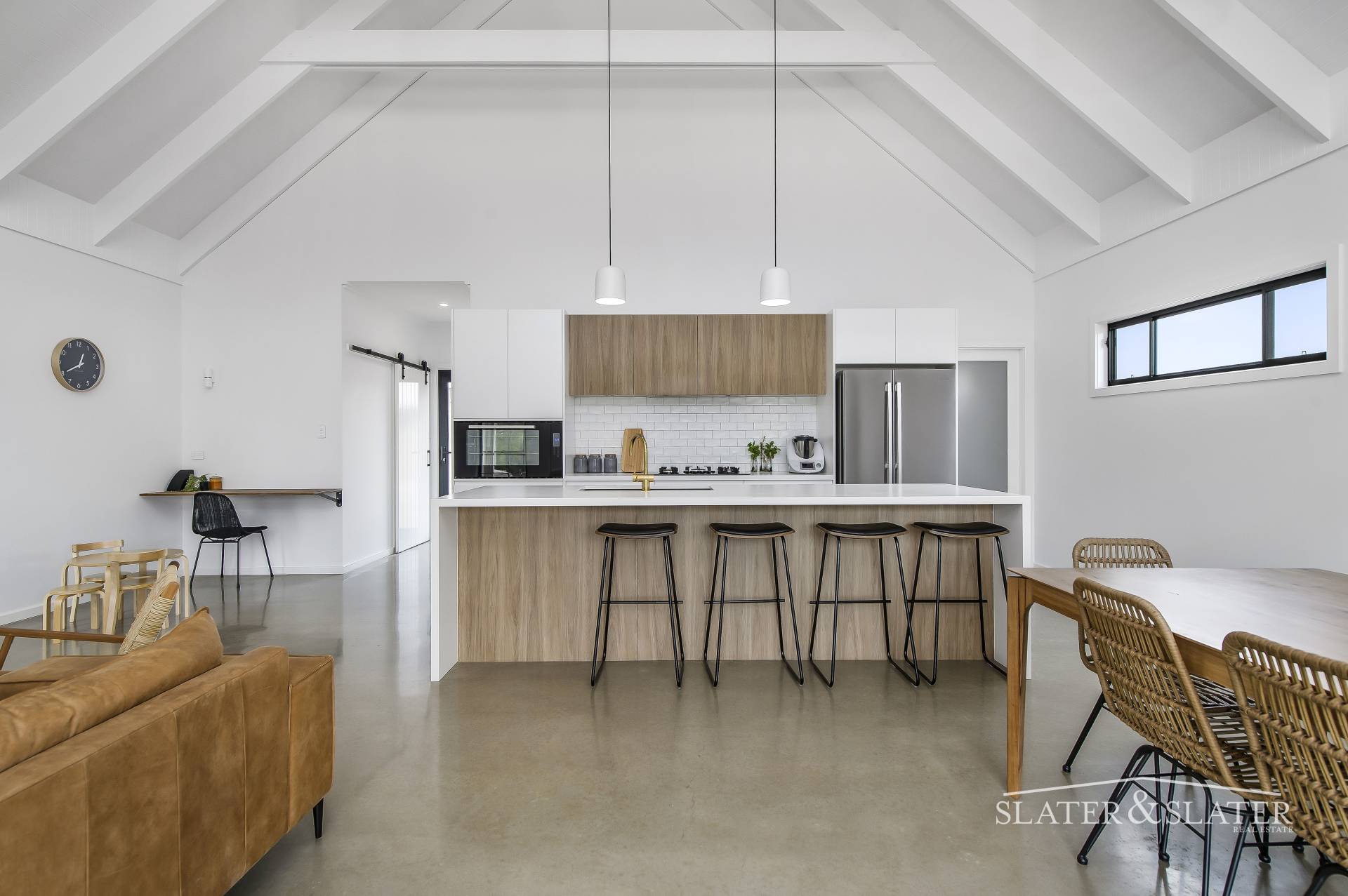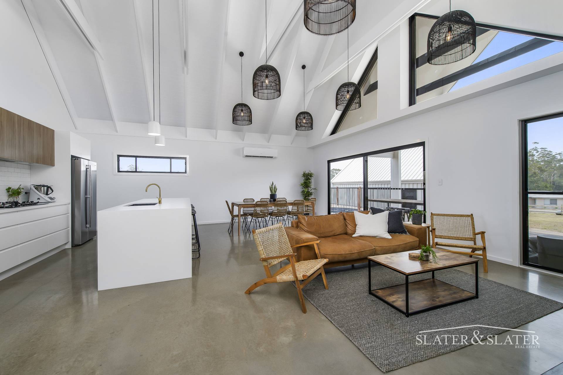 The design of this distinctive and striking as-new home has been inspired by the owners' love of New Zealand's South Island and the style and aesthetic of properties in its alpine and lake regions. Soaring ceilings, polished concrete floors and bespoke fixtures and fittings define the home that represents a truly individual custom design and build.