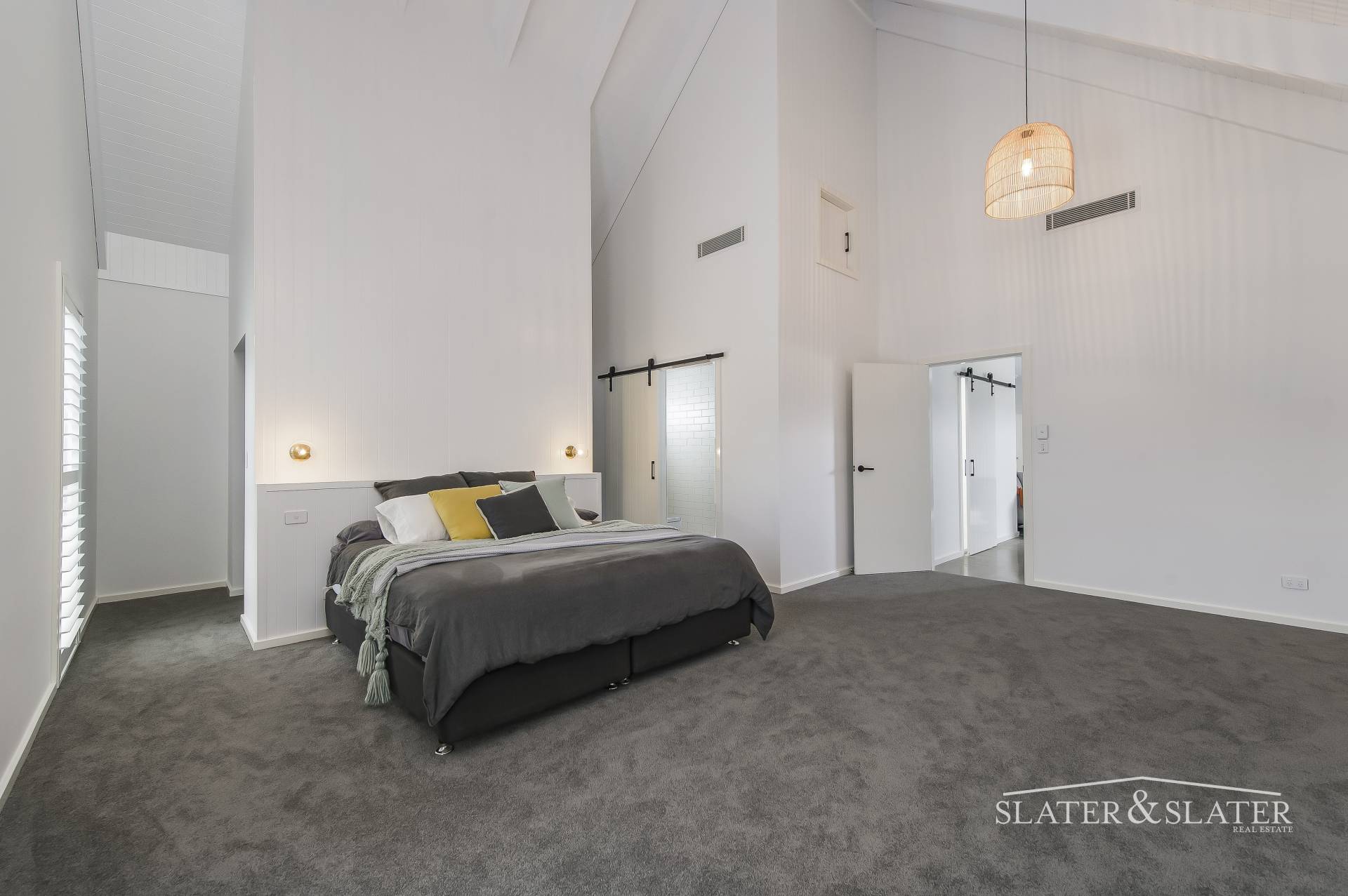 The bedroom zone features three bedrooms serviced by a stunning main bathroom and lounge room and a striking main bedroom that boasts expansive dimensions, soaring ceilings and a lavish ensuite.