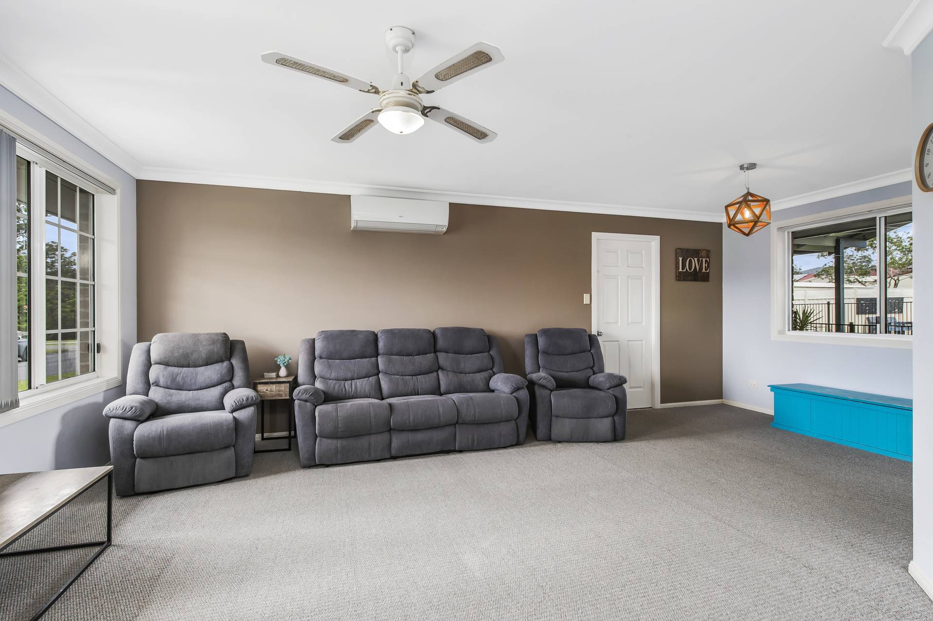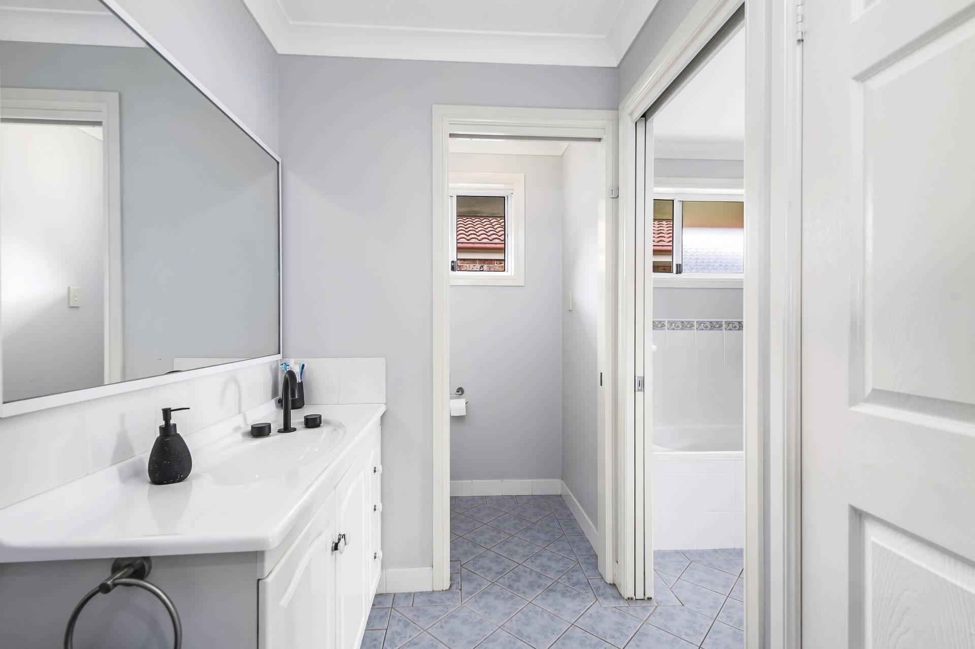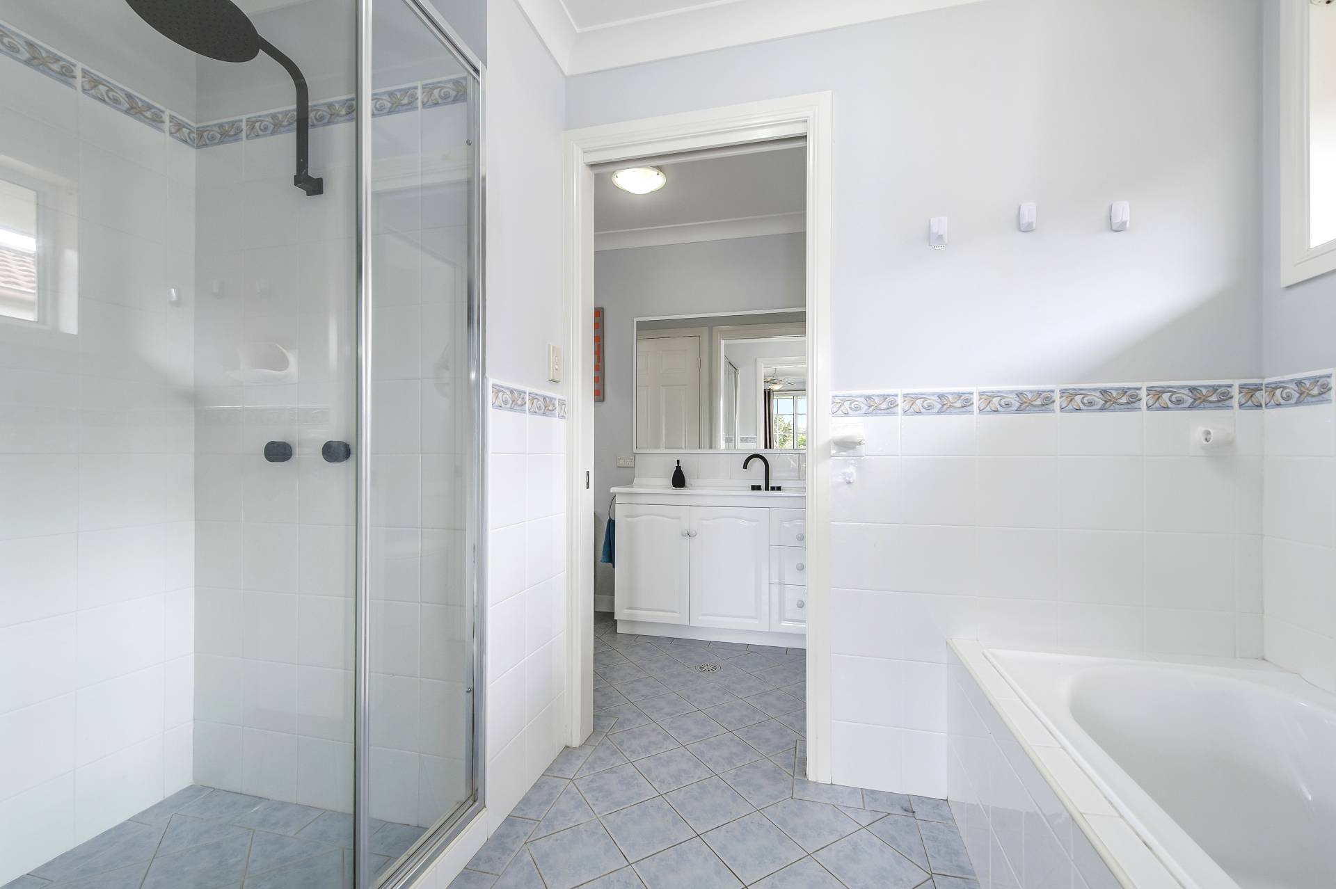 The home features three bedrooms, all with built-in wardrobes and ceiling fans. The three-way bathroom has a separate bath and shower and there is a second toilet with updated tapware.