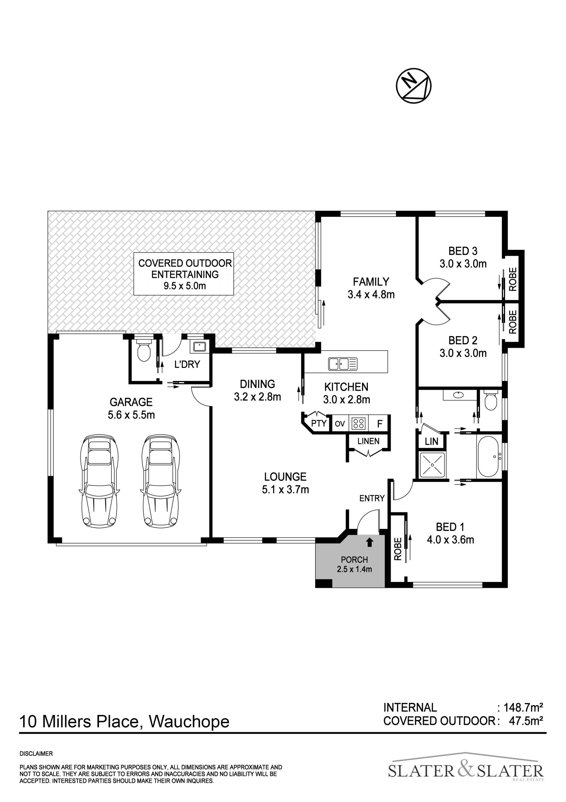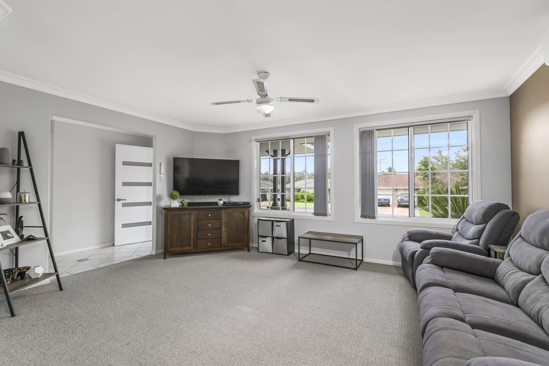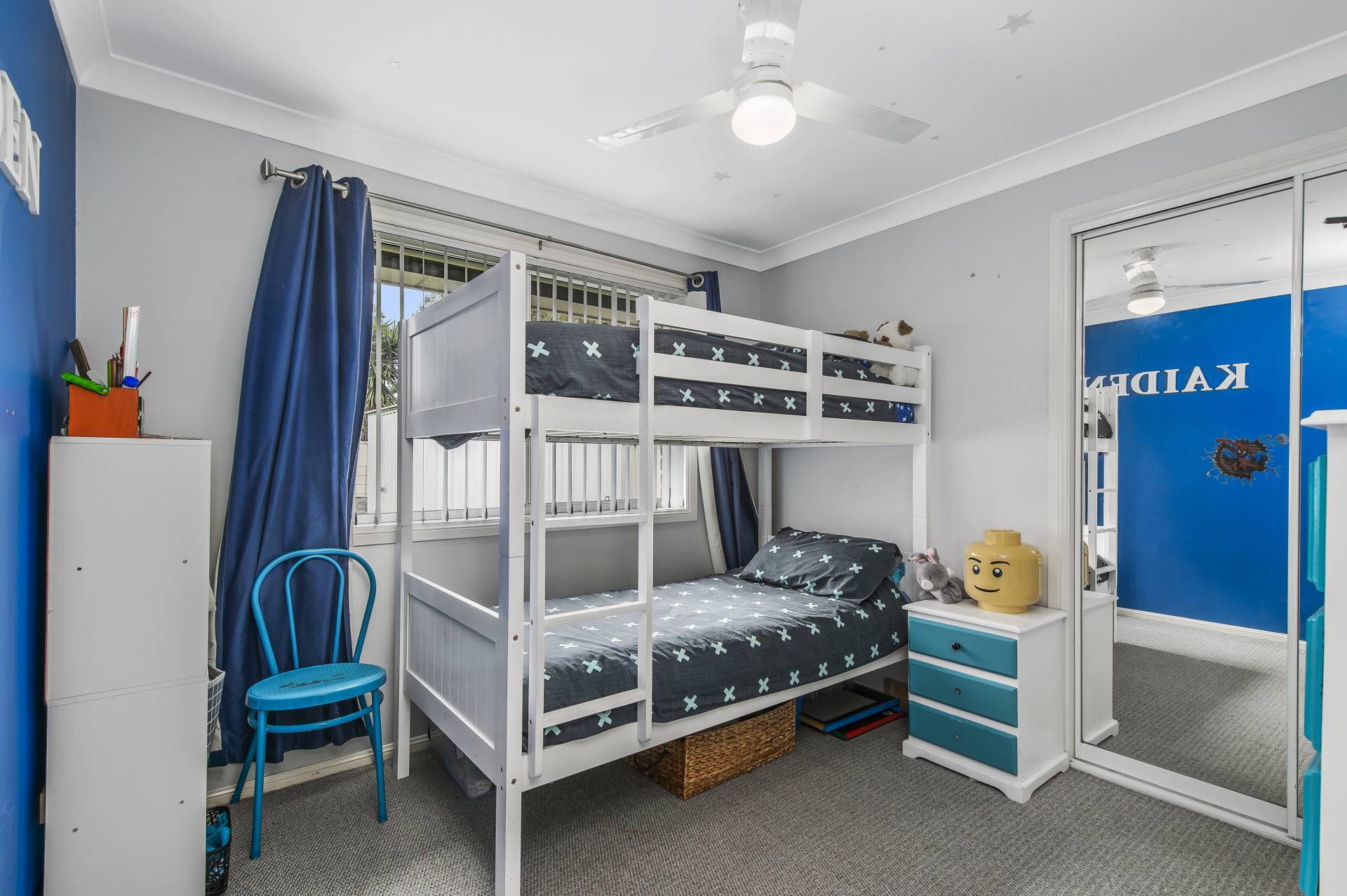 The home features three bedrooms, all with built-in wardrobes and ceiling fans. The three-way bathroom has a separate bath and shower and there is a second toilet with updated tapware.