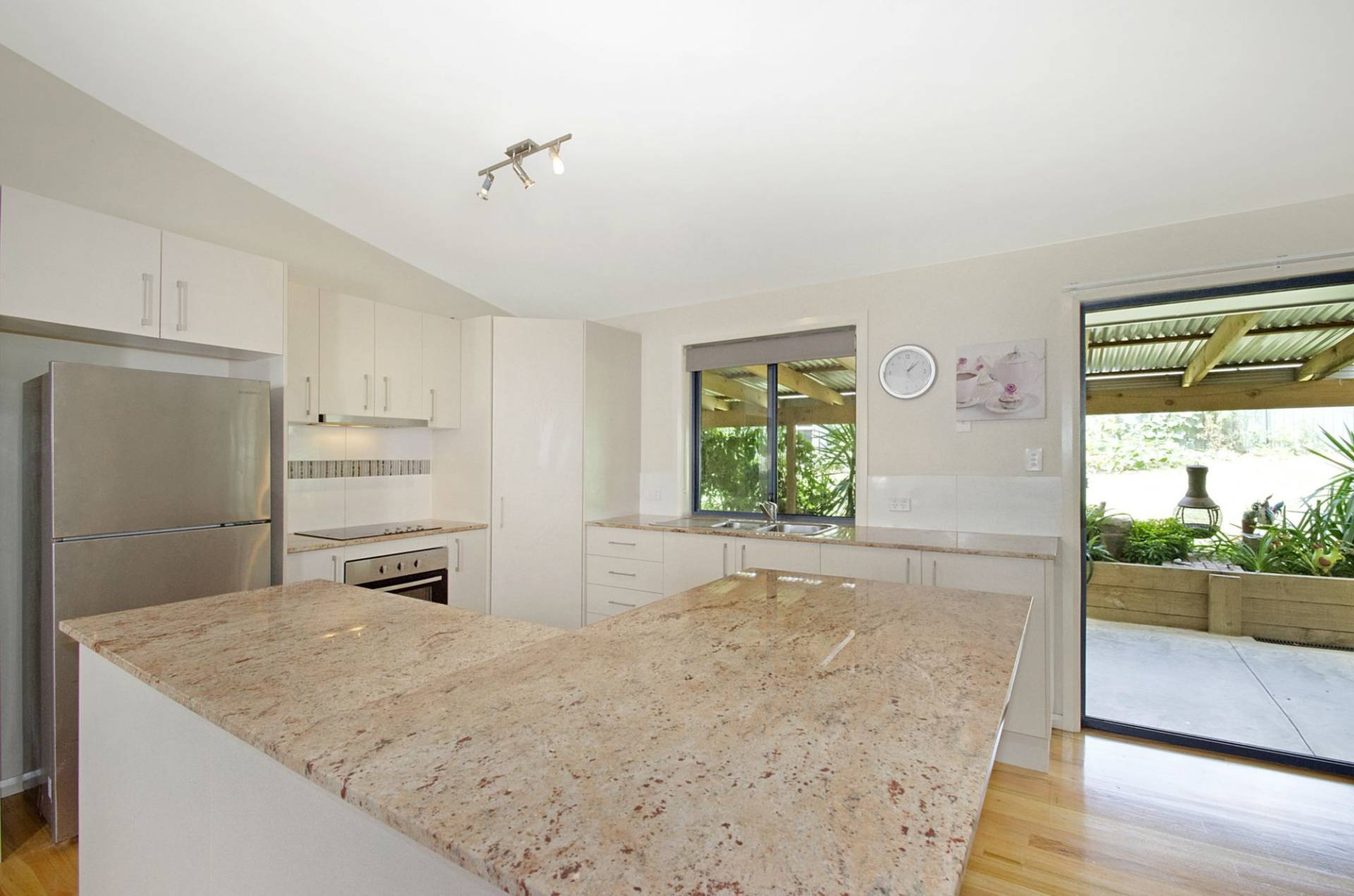 The private rear garden can be accessed via the side of the home and features a shed and large vegetable plot currently overflowing with produce and watered via a 5000 gallon rainwater tank that also services the separate laundry.