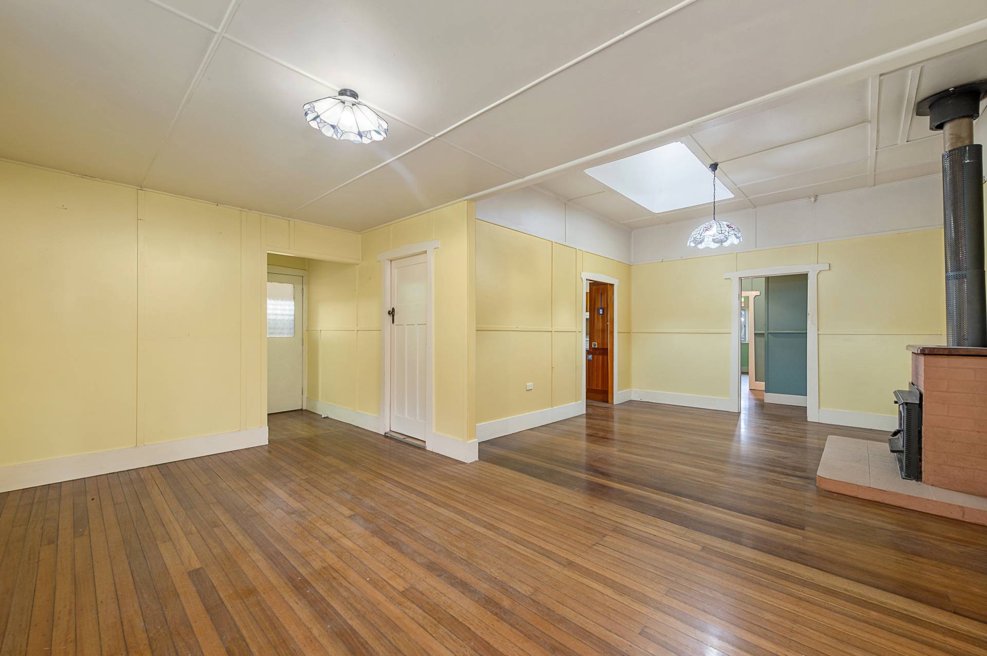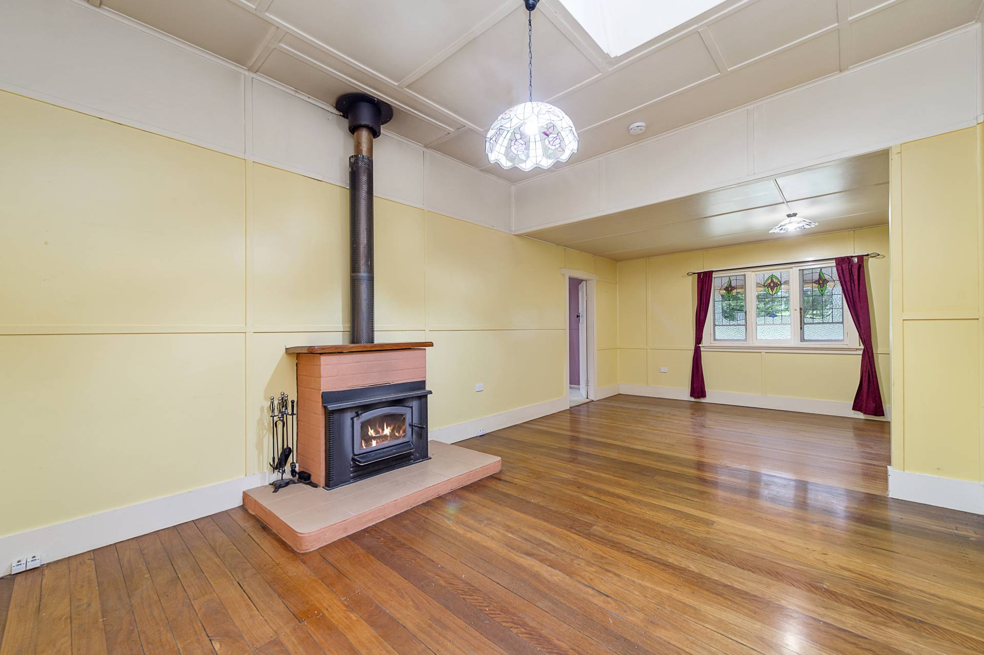 The family living, dining and kitchen zone is very spacious and has a wood heater and large skylight. The main lounge is also well sized with an open fire.