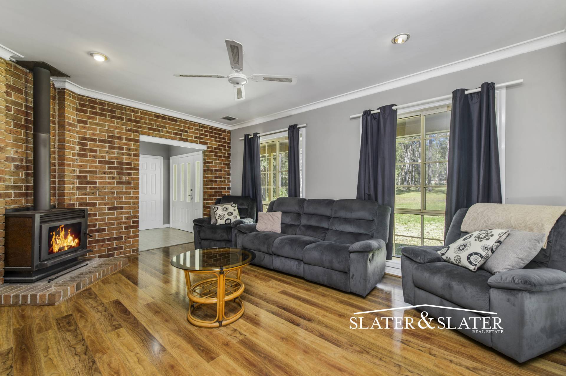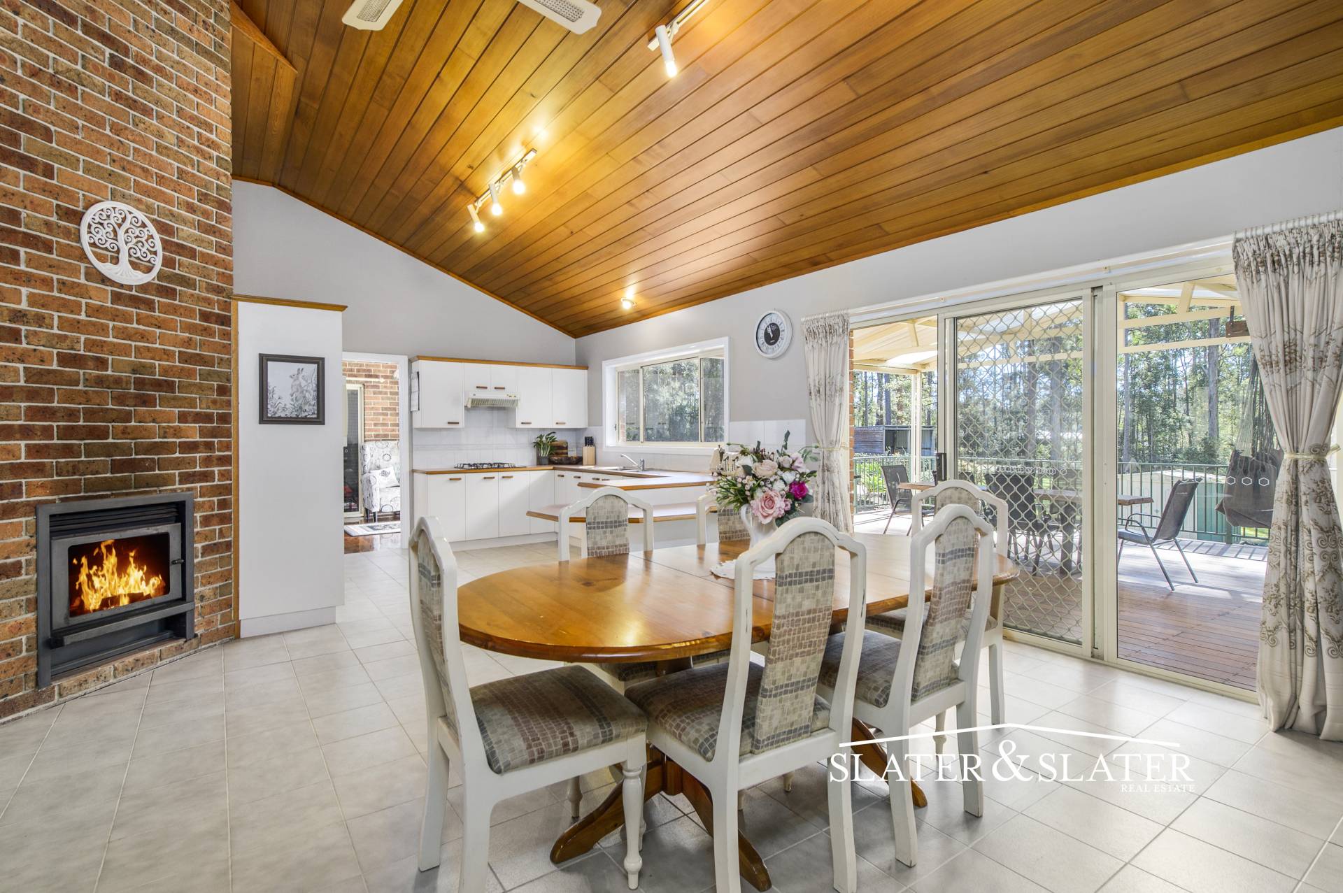 The main lounge has timber flooring and a wood heater that also opens through to the family zone. There is a further dining area and built-in bar and fridge that has another sliding door to the rear deck.