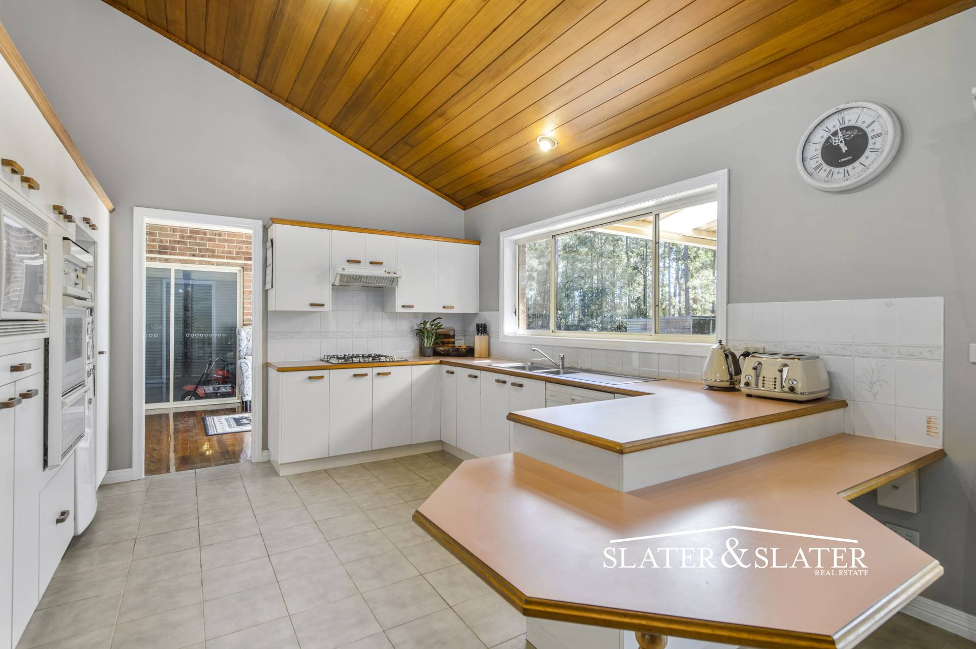 The home has an air conditioned and spacious family dining and kitchen zone that features a soaring timber-lined ceiling and flows through sliding doors to the newly completed outside covered entertaining area.