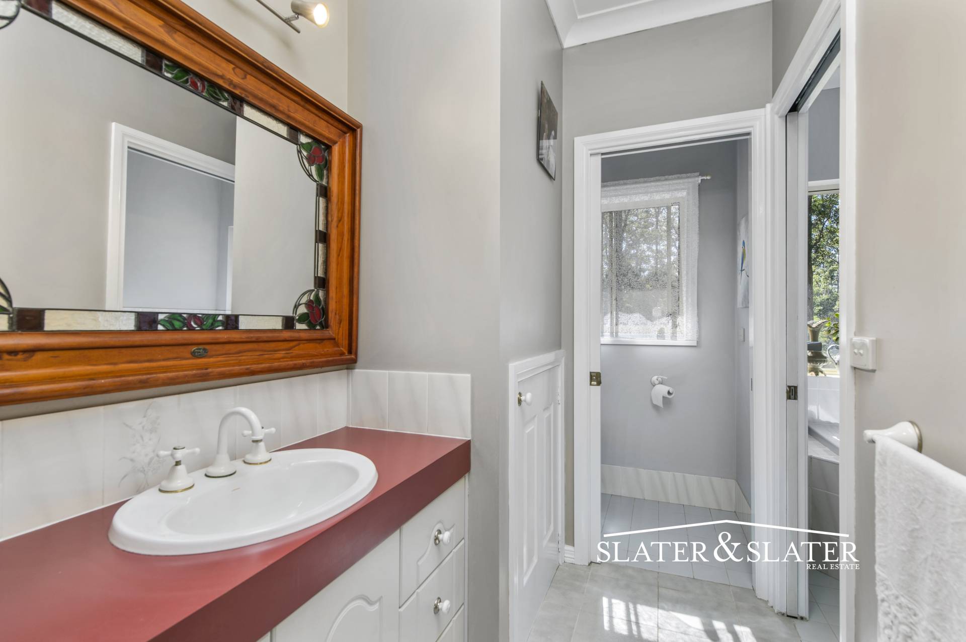 At the other end of the home are the four bedrooms, the main with ensuite and walk-in wardrobe while the other three bedrooms have built-in wardrobes and are serviced by the main bathroom with separate shower and bath.