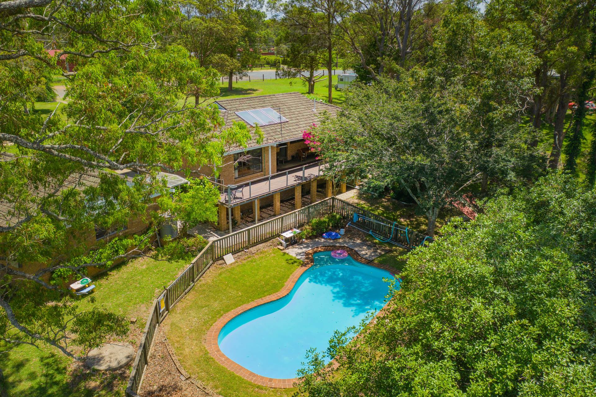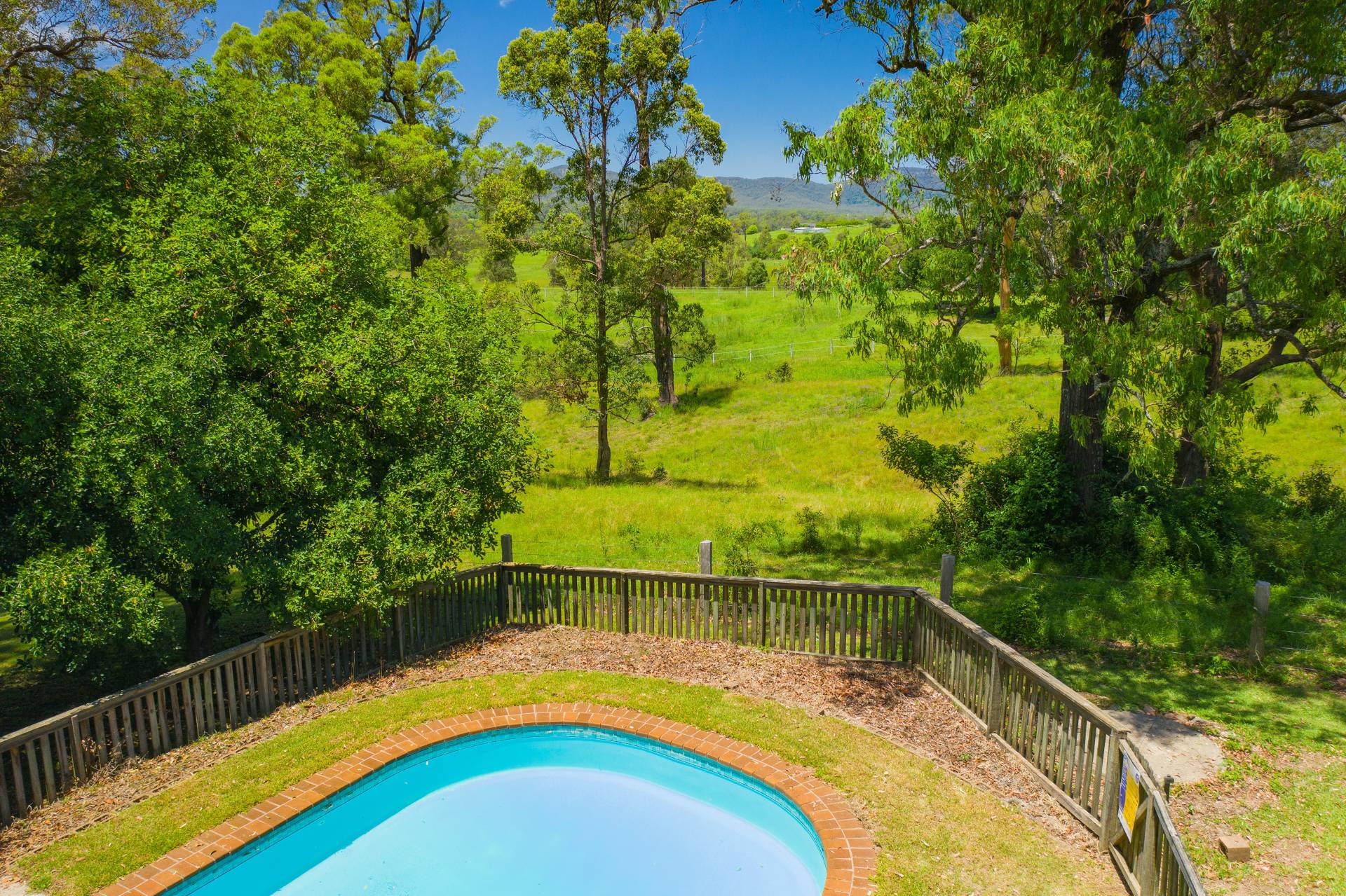 Set in an elevated position on the edge of Beechwood village is this lovely two acre property that features a three bedroom home, separate studio, large shed, pool and views across the Hastings River valley to Bago Bluff.