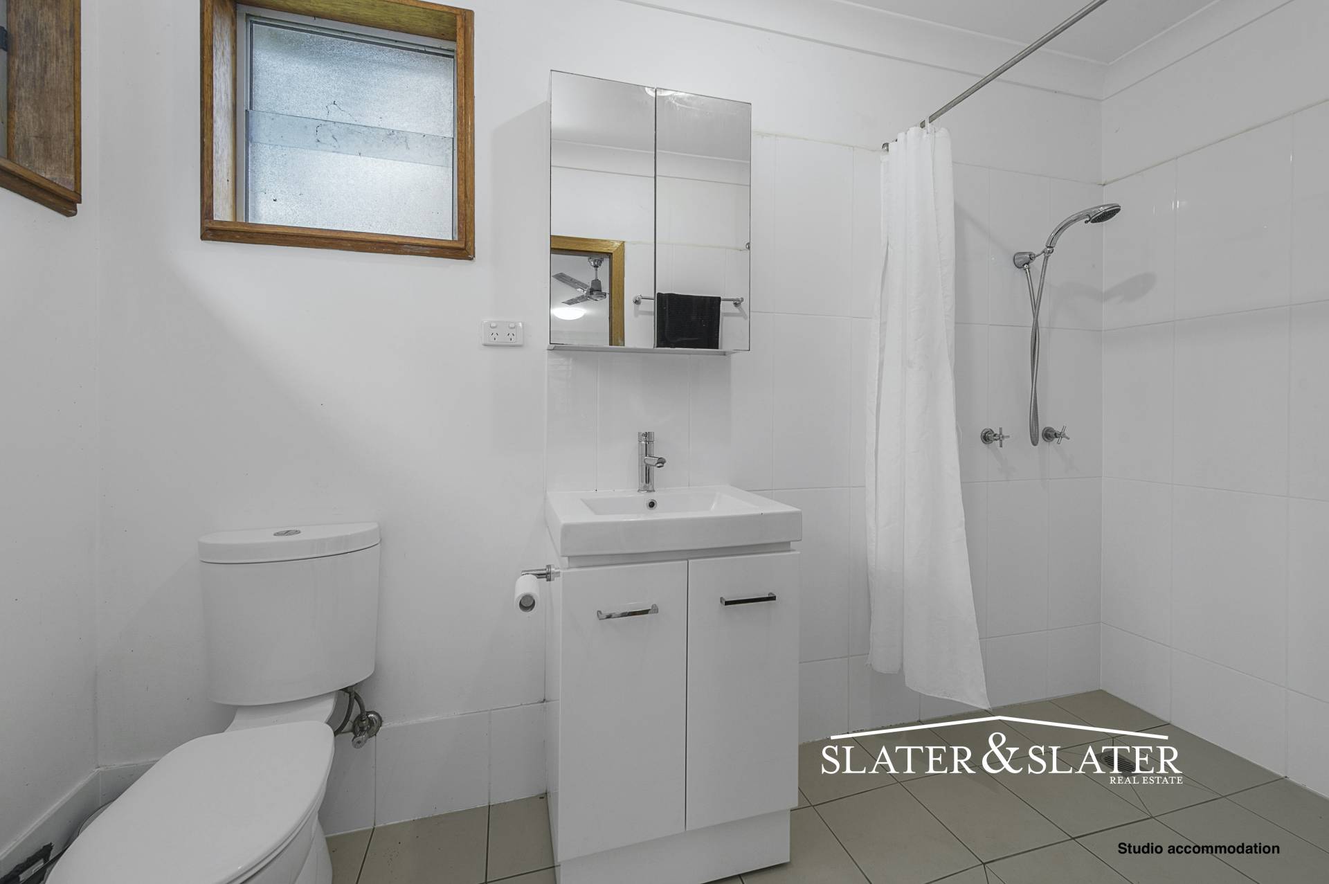 The studio is sleek and bright with a kitchen and dining area, sparkling bathroom and separate bedroom with living space and ample storage and built-in robes.
