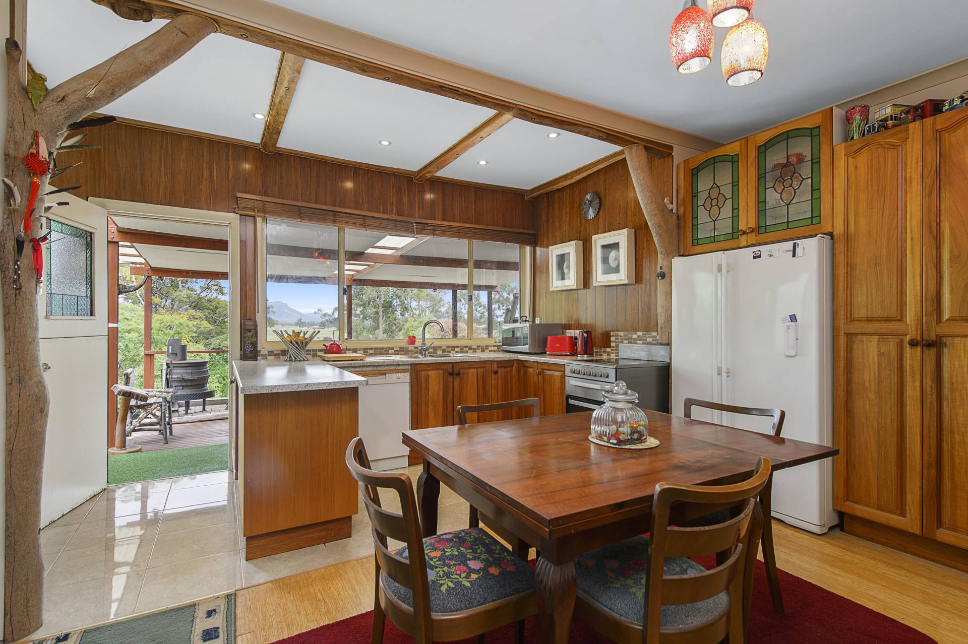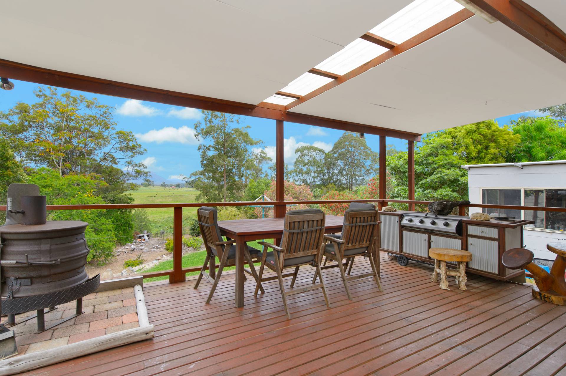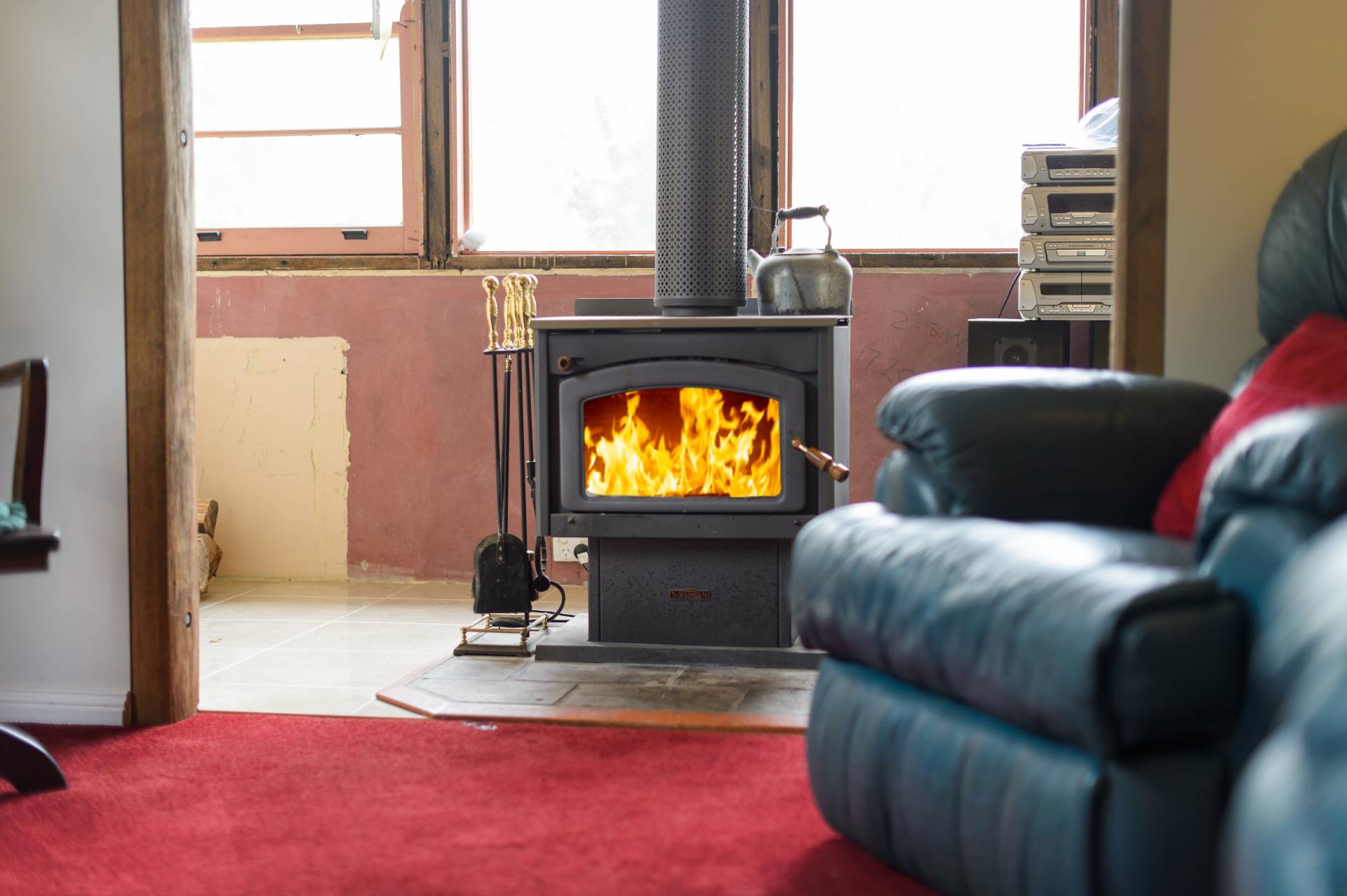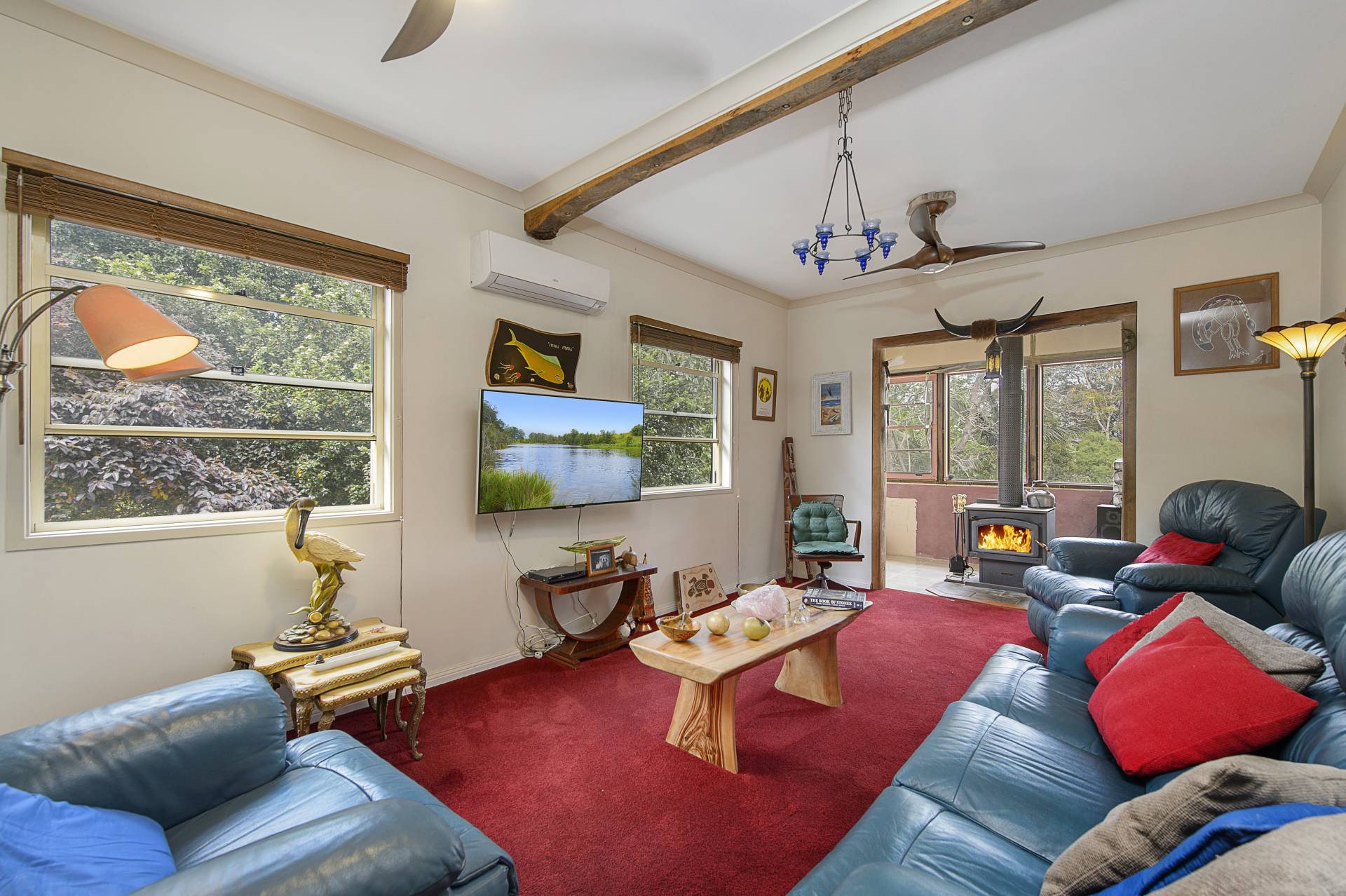 The rear deck is a natural destination to enjoy the vista as is the cozy area next to the wood heater.