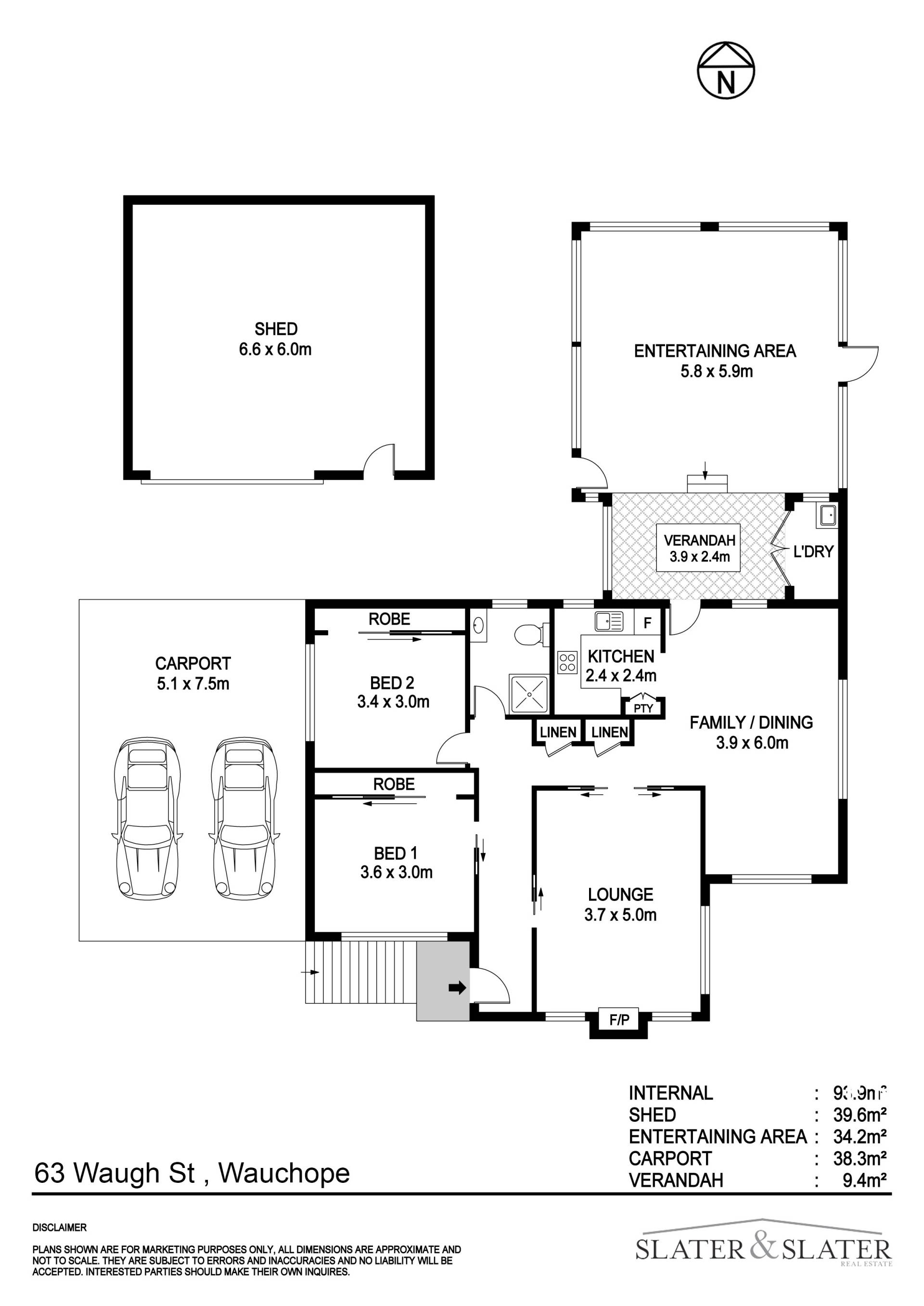 A 6m x 7m shed with electric roller door offers a perfect storage space for the tradesman or hobbyist with a new double carport providing space for vehicles. There is further useful enclosed storage under the home.