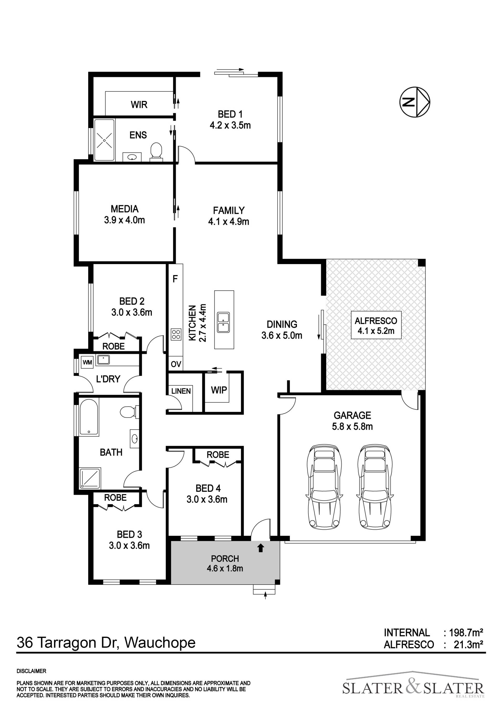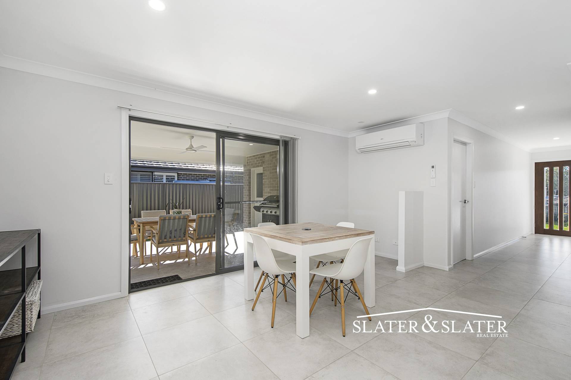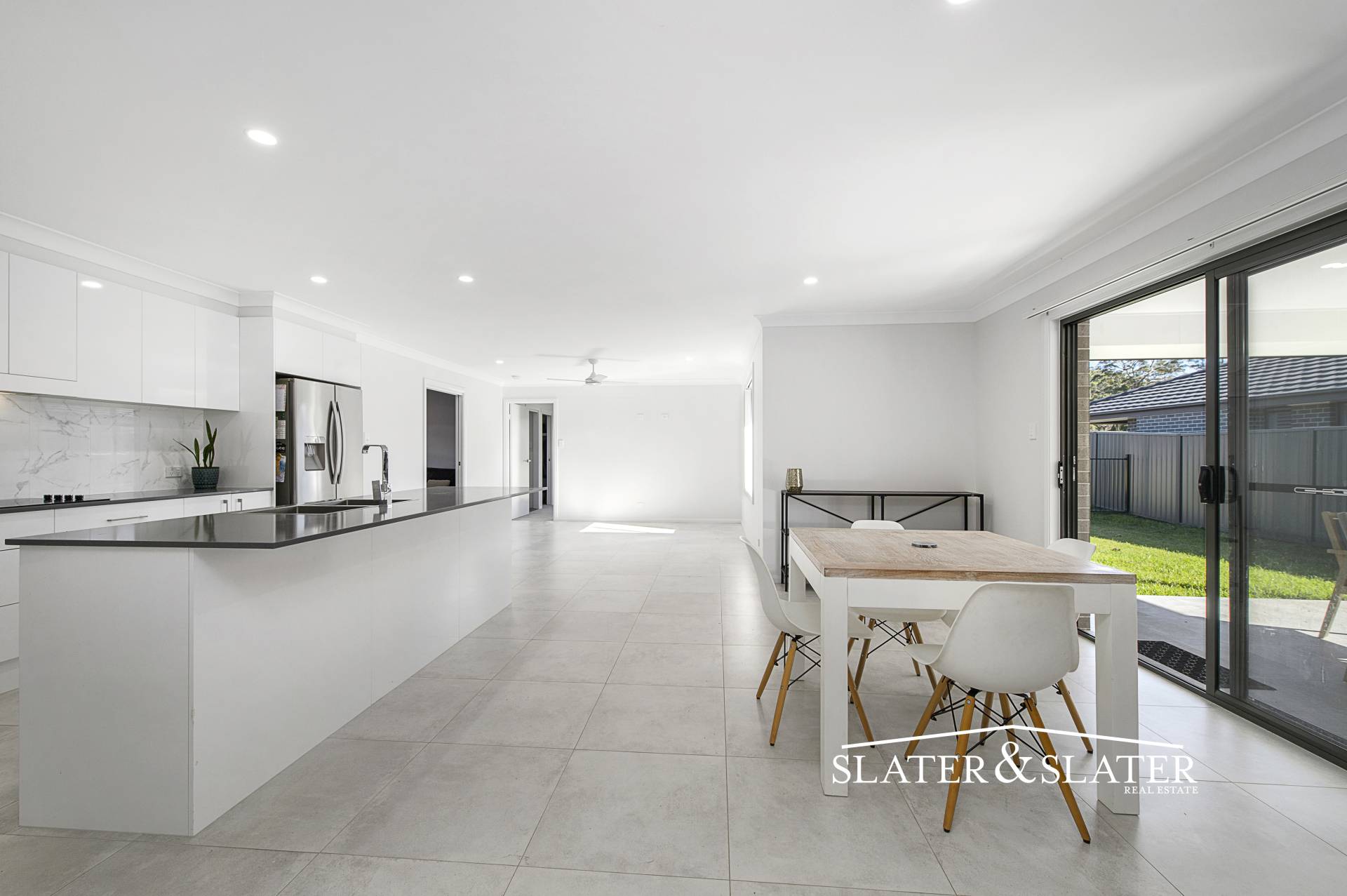 The floorplan offers a air conditioned main living, dining and kitchen zone that leads out through a sliding door to a covered alfresco area. The kitchen features a large island bench and a walk-in pantry.
