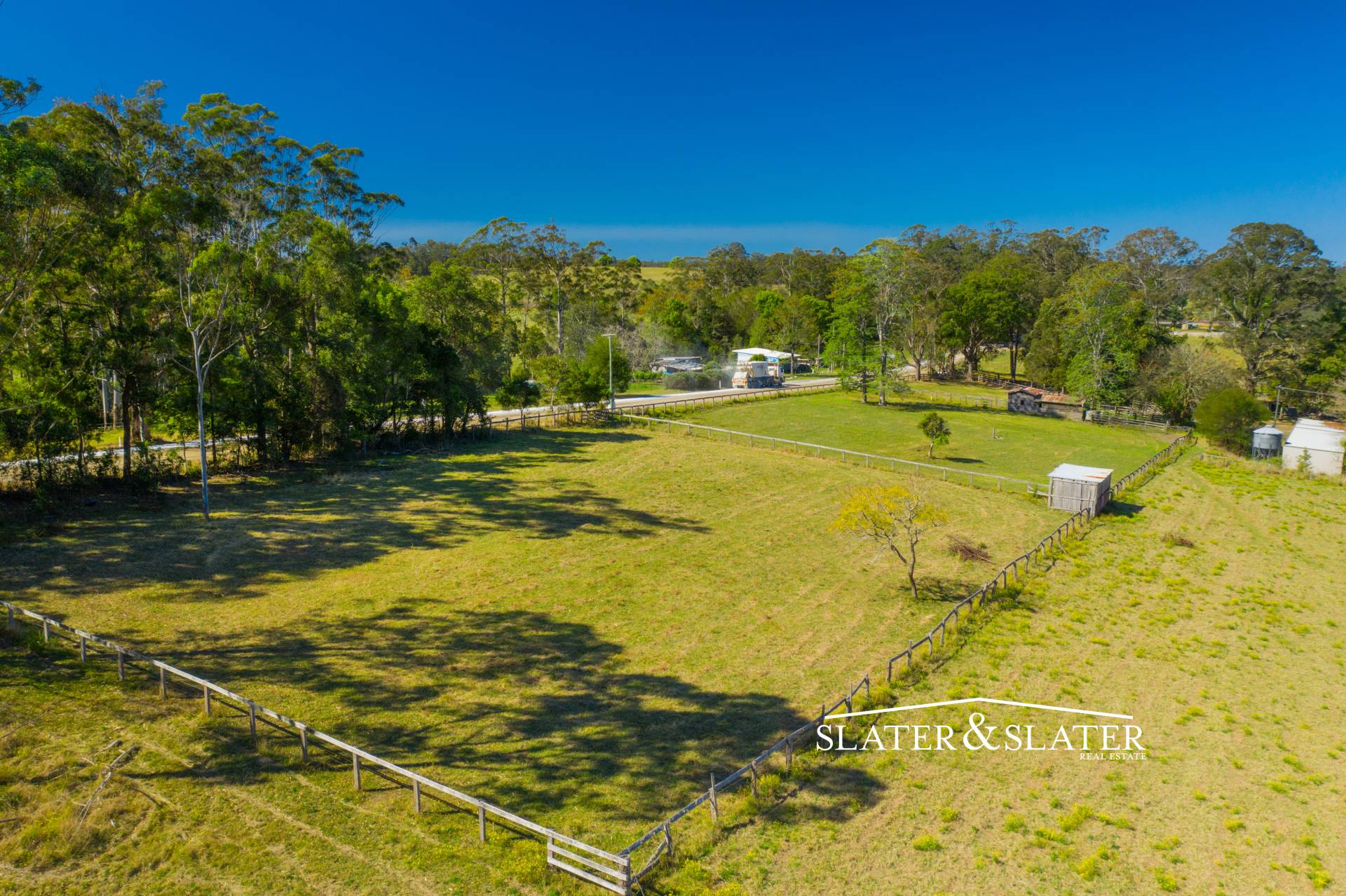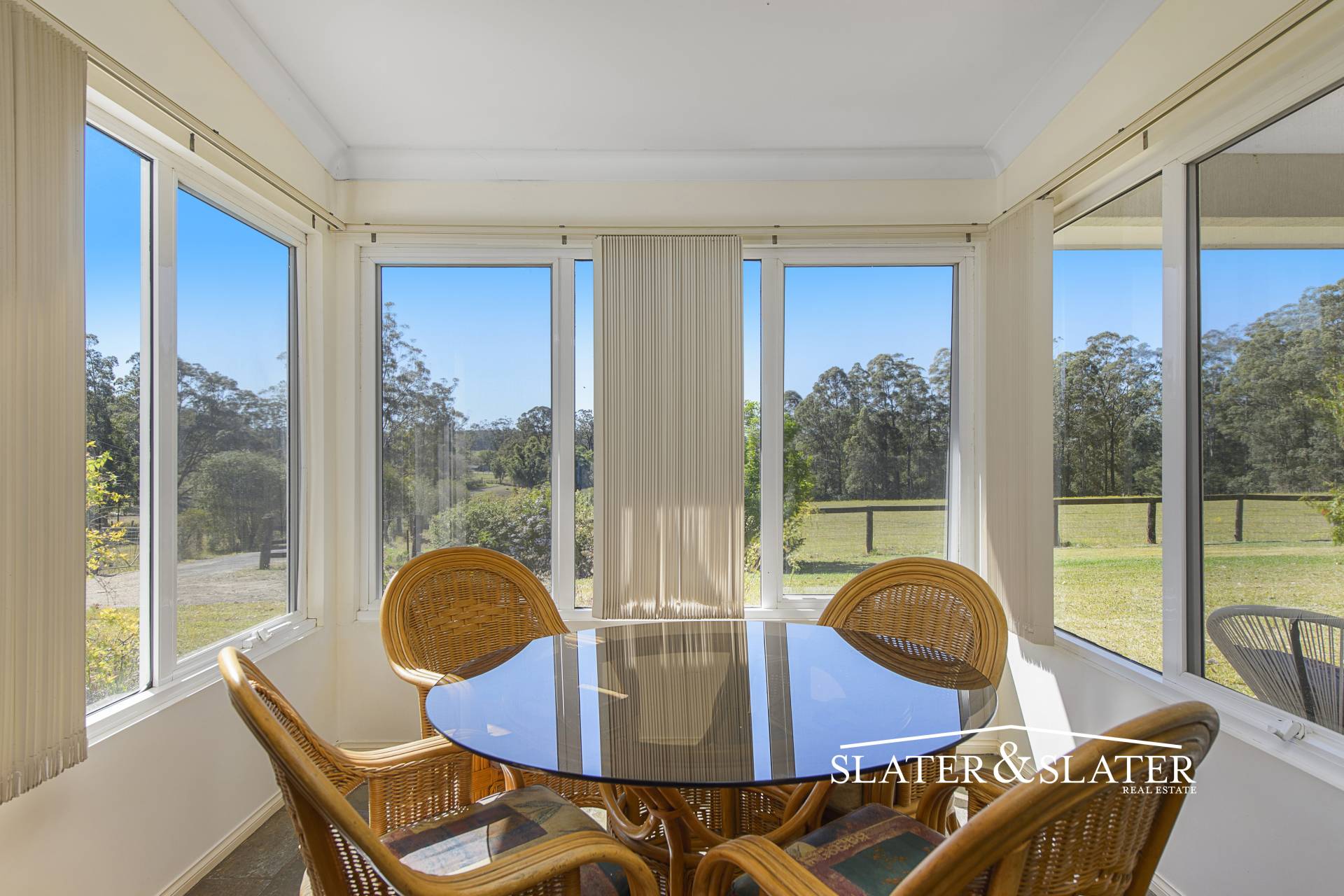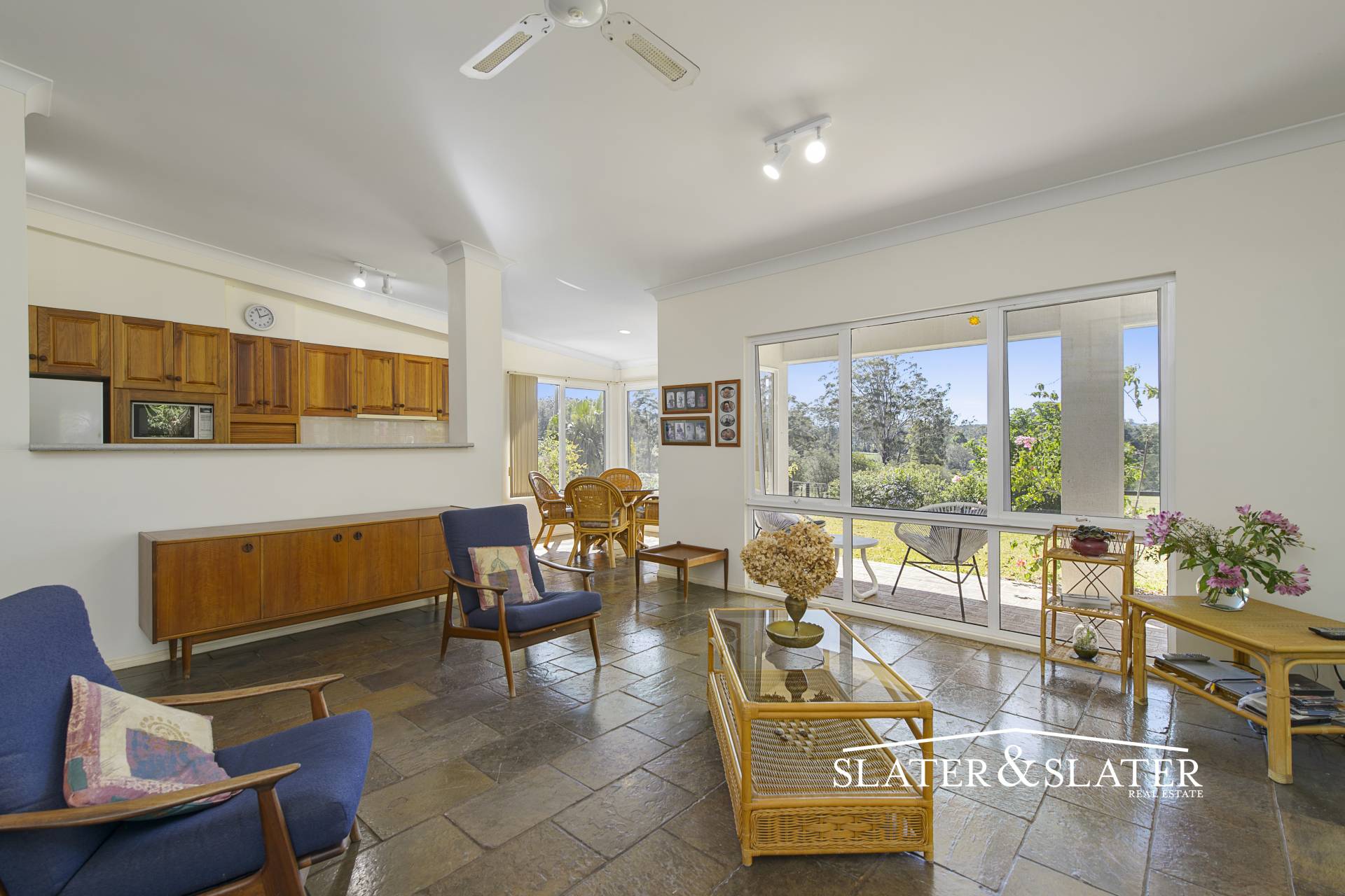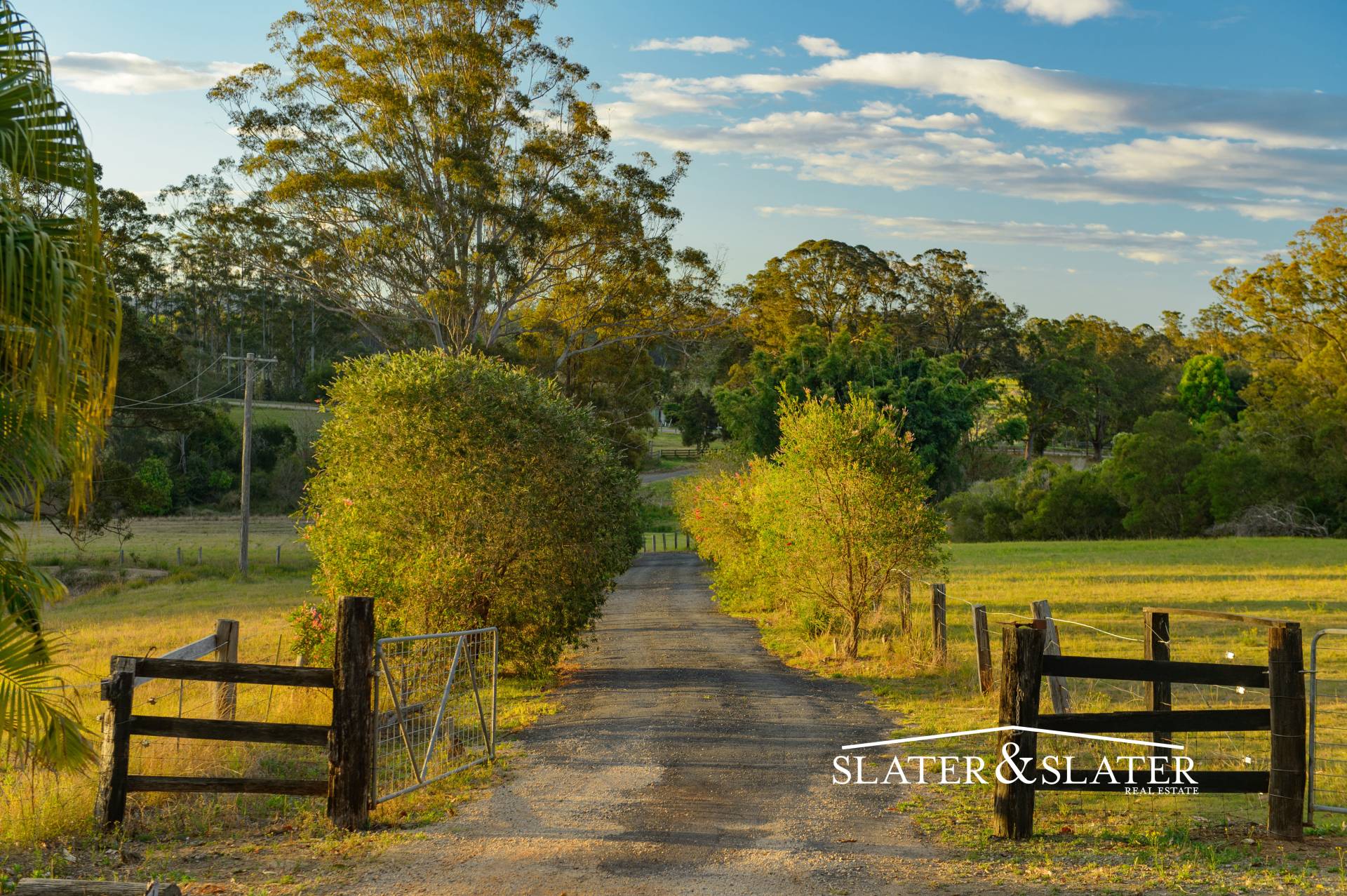 113 acres with seasonal creek, dams x 5, paddocks x 9, timber cattle yards with crush and race, timber round yard, stable complex x 3 stables and feed and tack room, horse float carport, timber plantation, wood heater double sided, air conditioners x 4, outside undercover entertaining area, 100,000 litre underground water tank, new carpet throughout, slate floors, wide hallway, raked ceiling, views towards Mt Cairncross, close to Wauchope, 27km to Port Macquarie