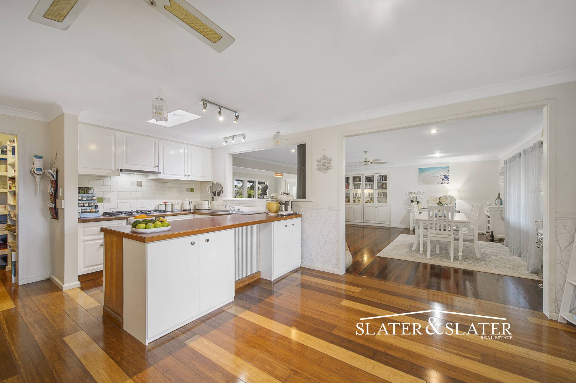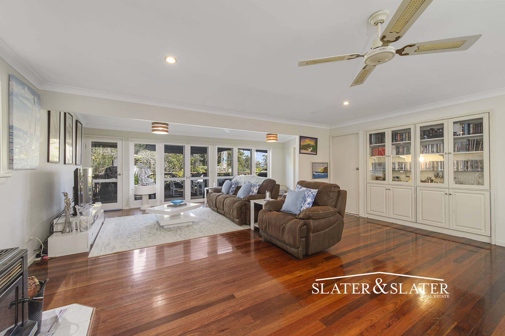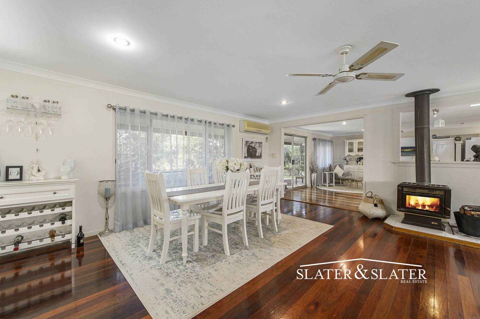 The expansive open plan living and dining zone has a wood fire for winter and air conditioning for the warmer seasons with a set of French doors that open onto the expansive verandah promoting indoor/outdoor living.