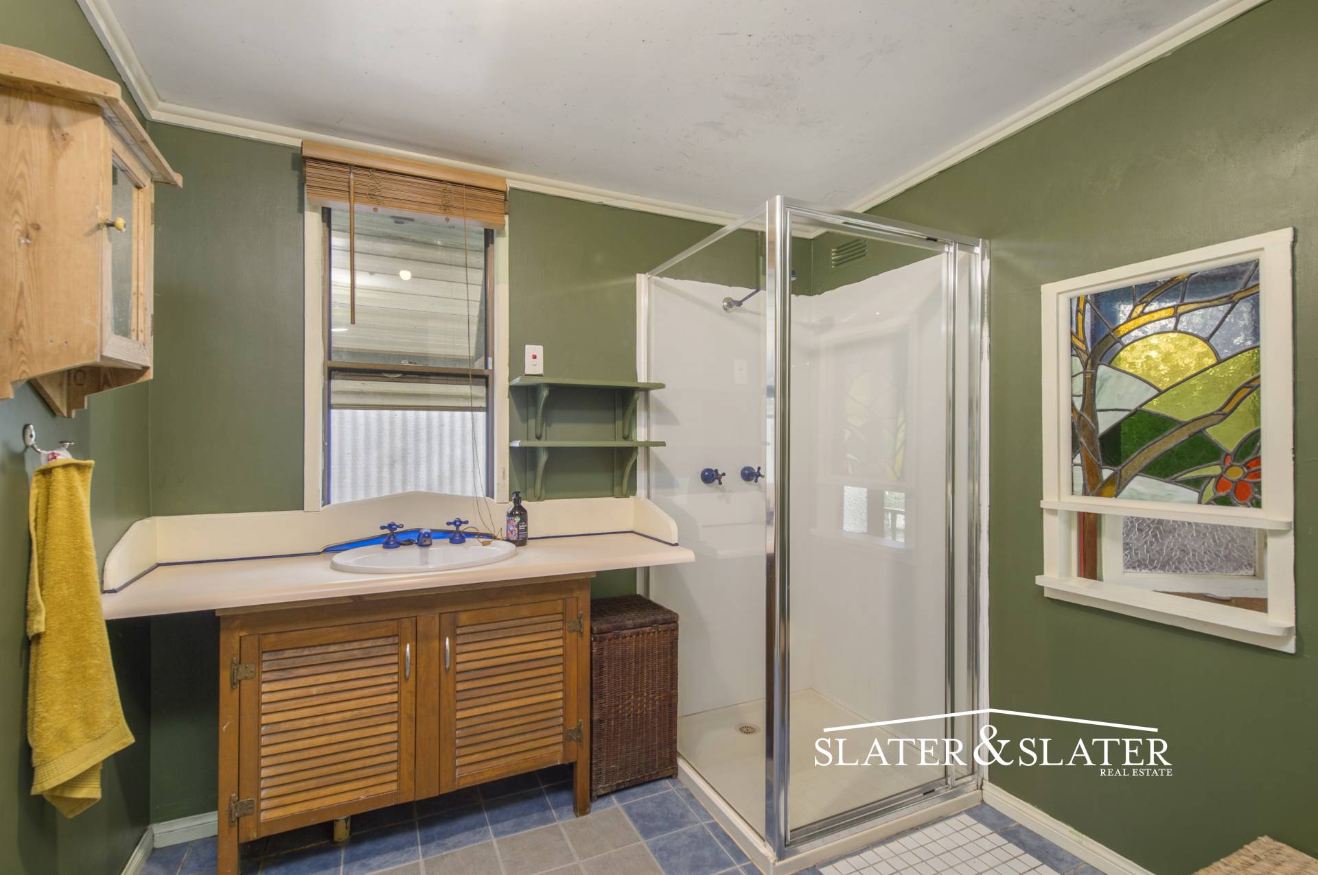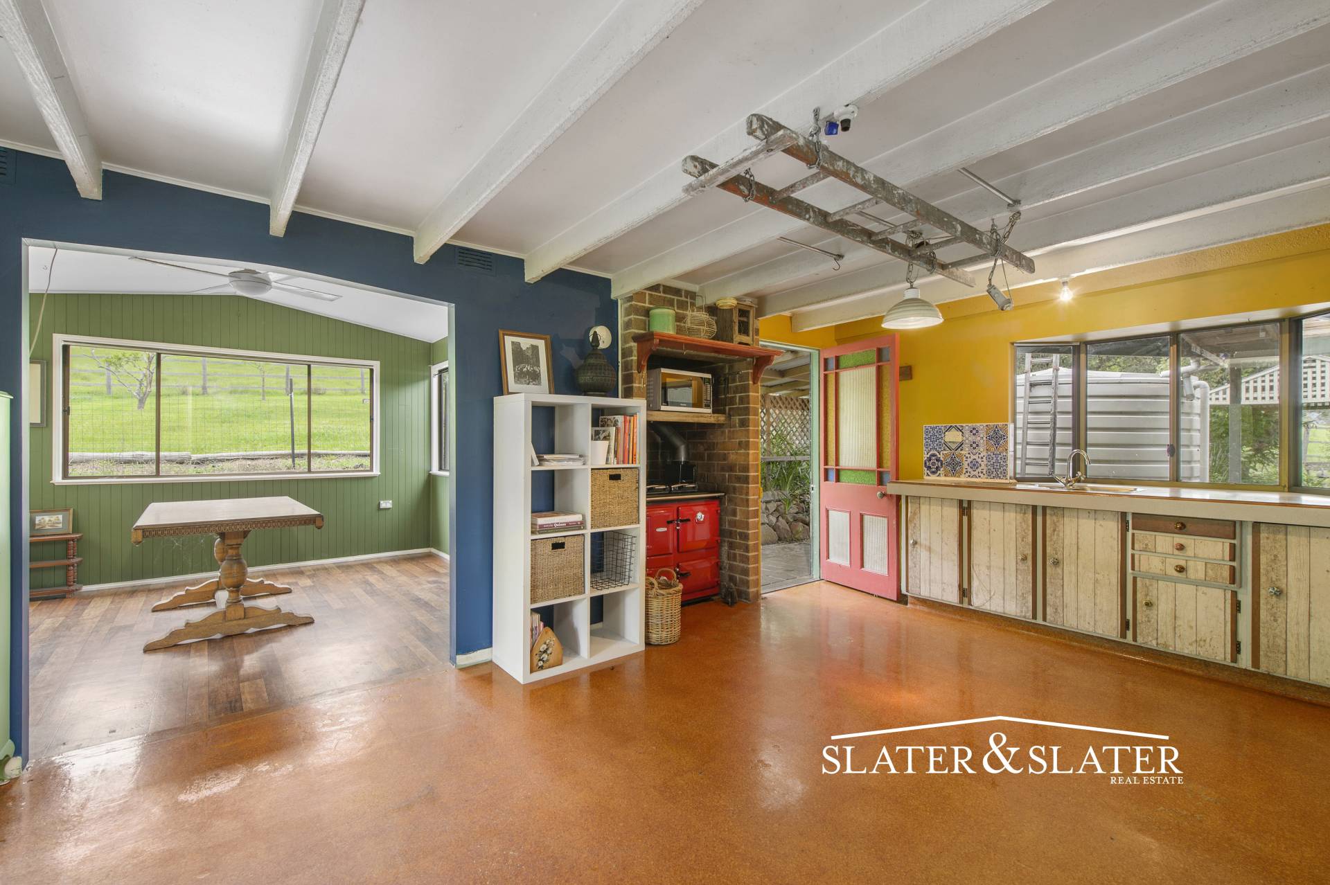 Offering potential and character in equal measure the home has an air-conditioned open plan living and kitchen zone that connects through to a dining area. A Rayburn fuel stove imported from England is an eye-catching kitchen fixture that also heats the home and is ready to be connected to the hot water system.