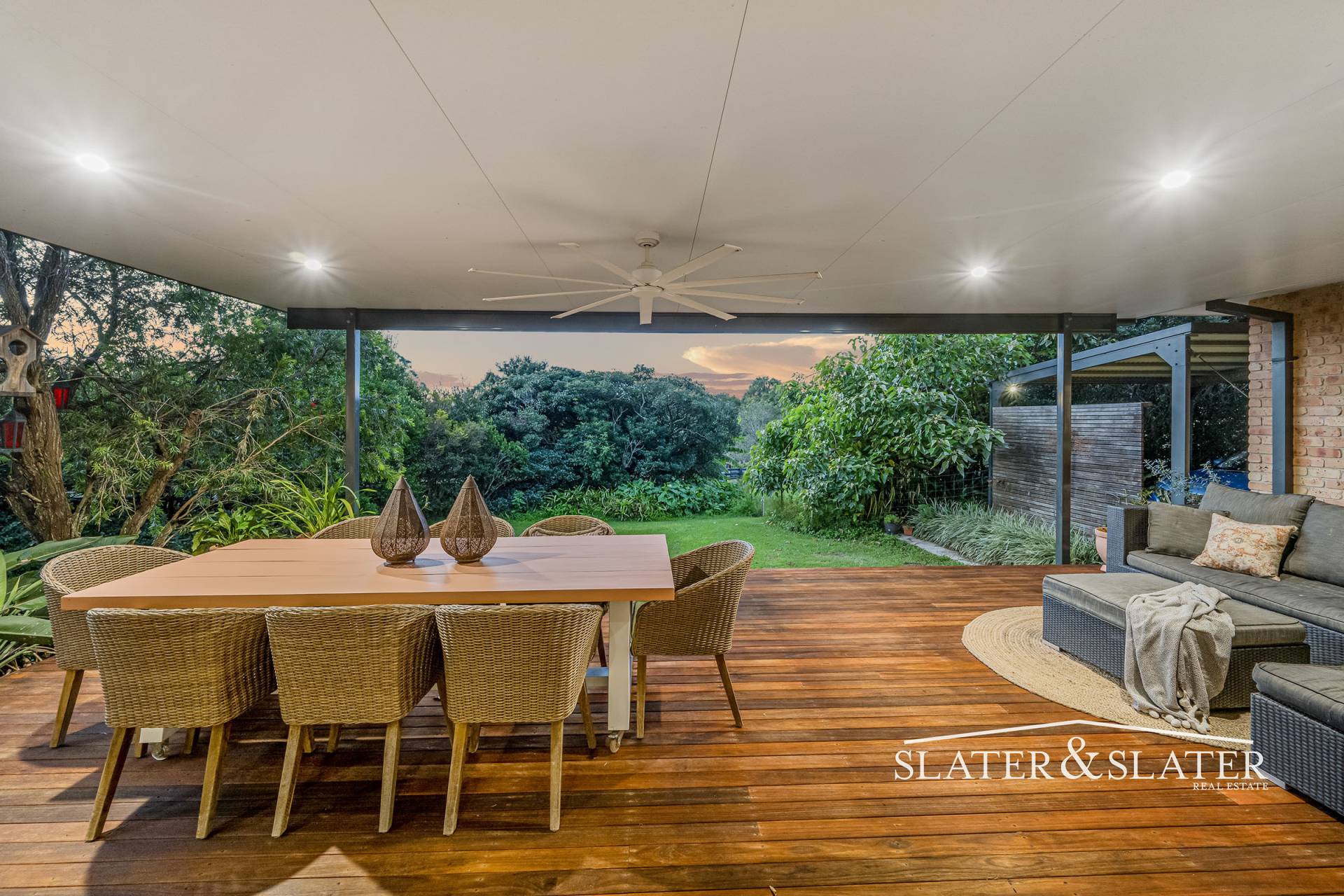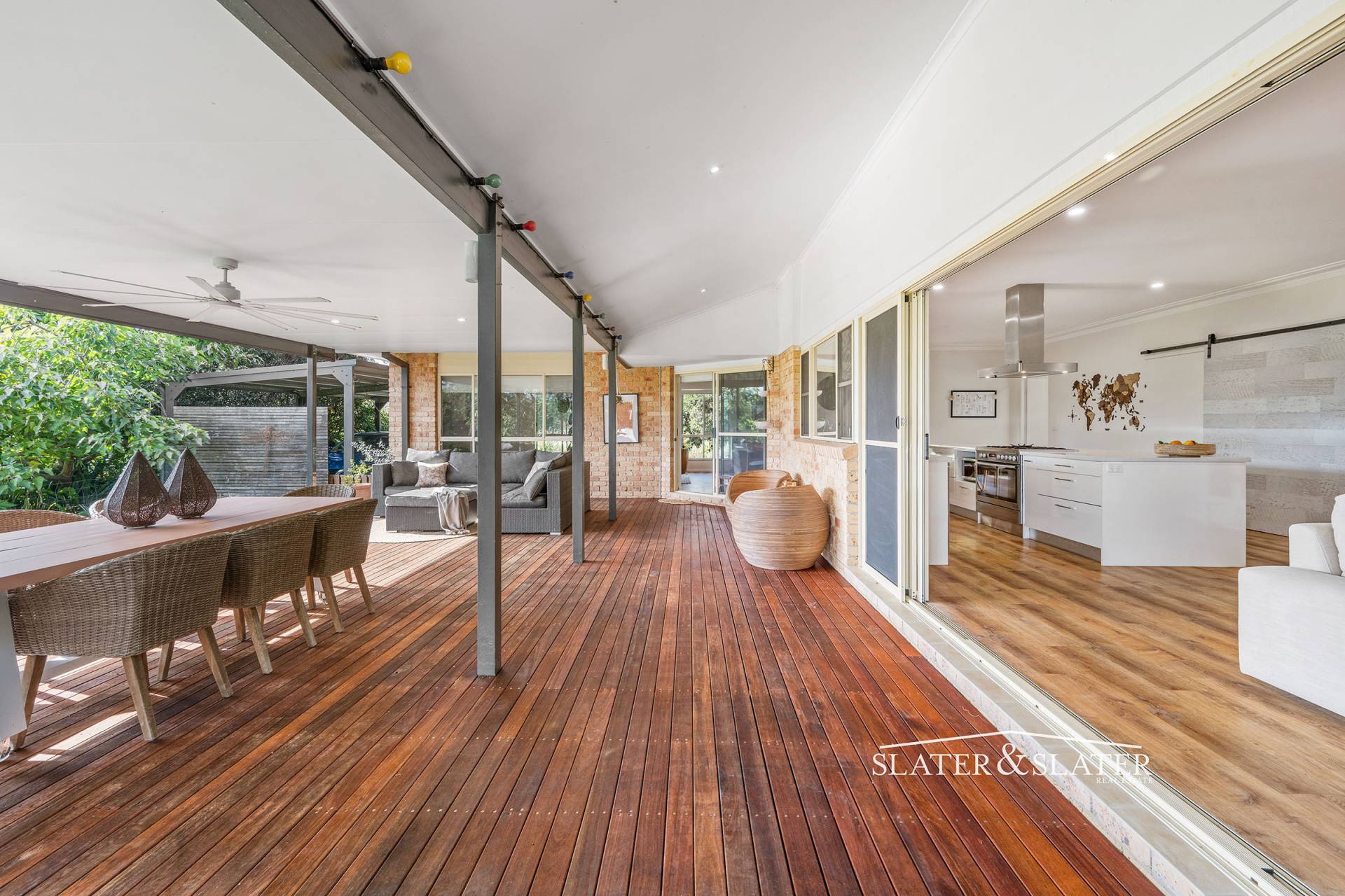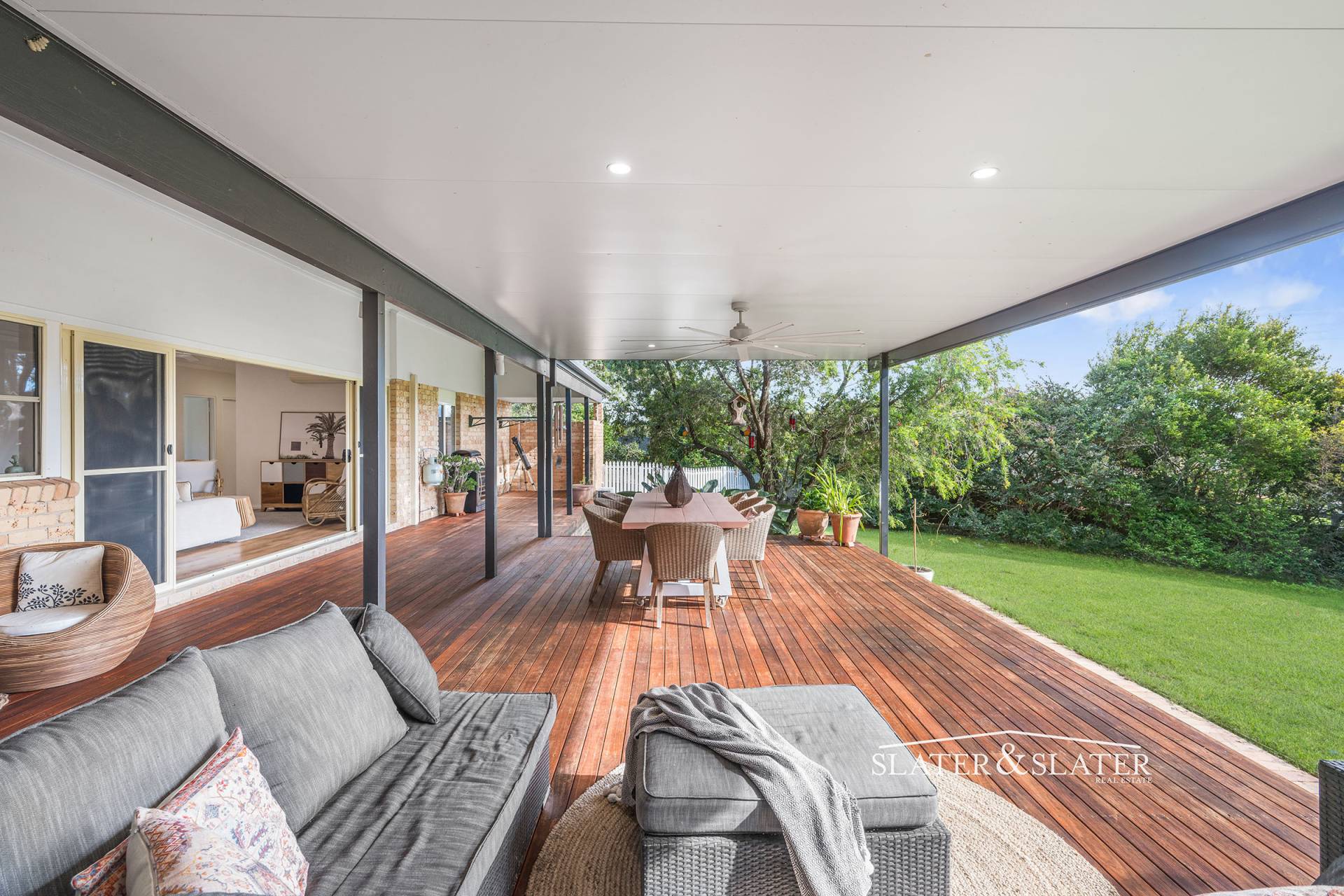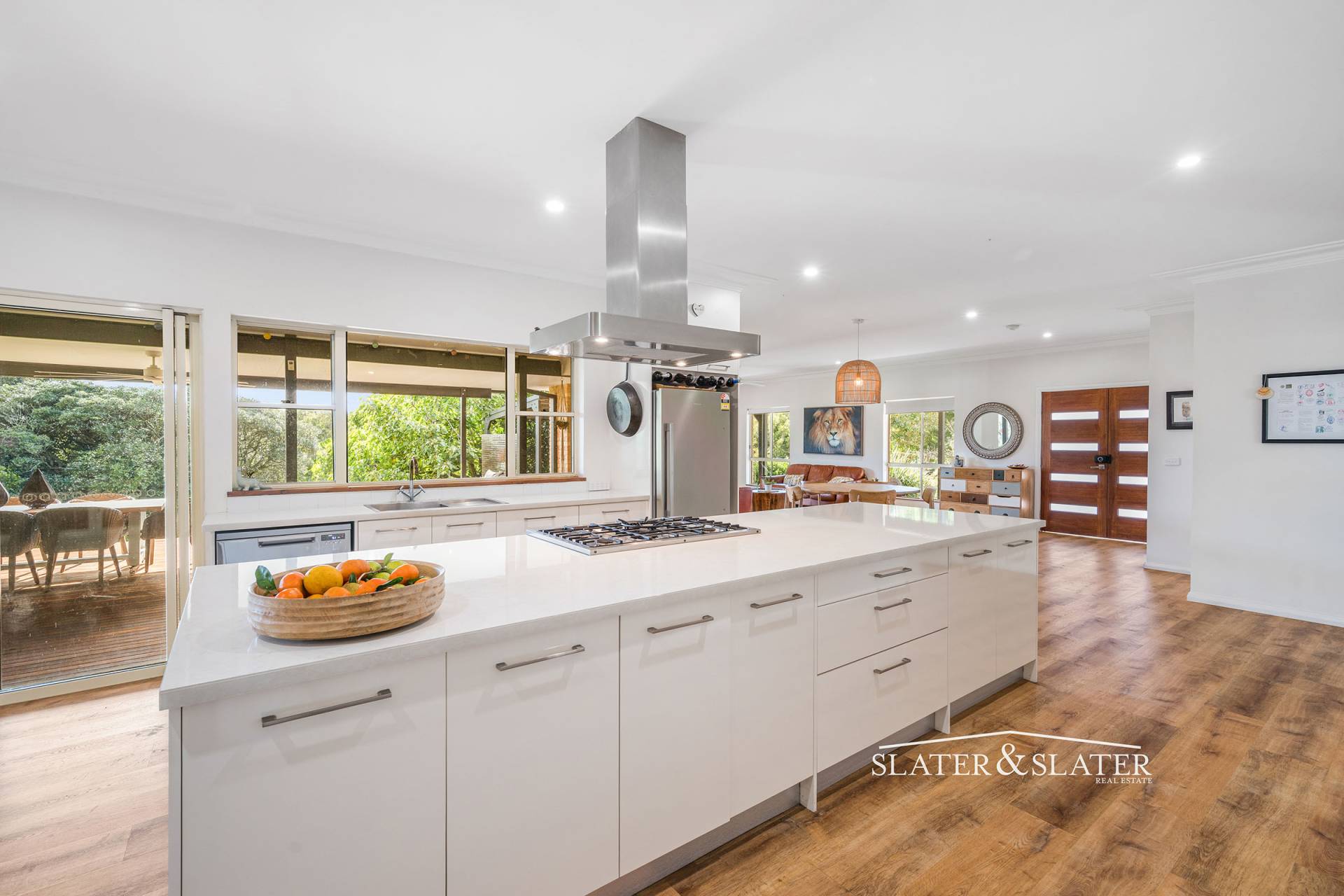 The home impresses with its substantial open plan design that flows out onto a substantial covered verandah that overlooks the private gardens.